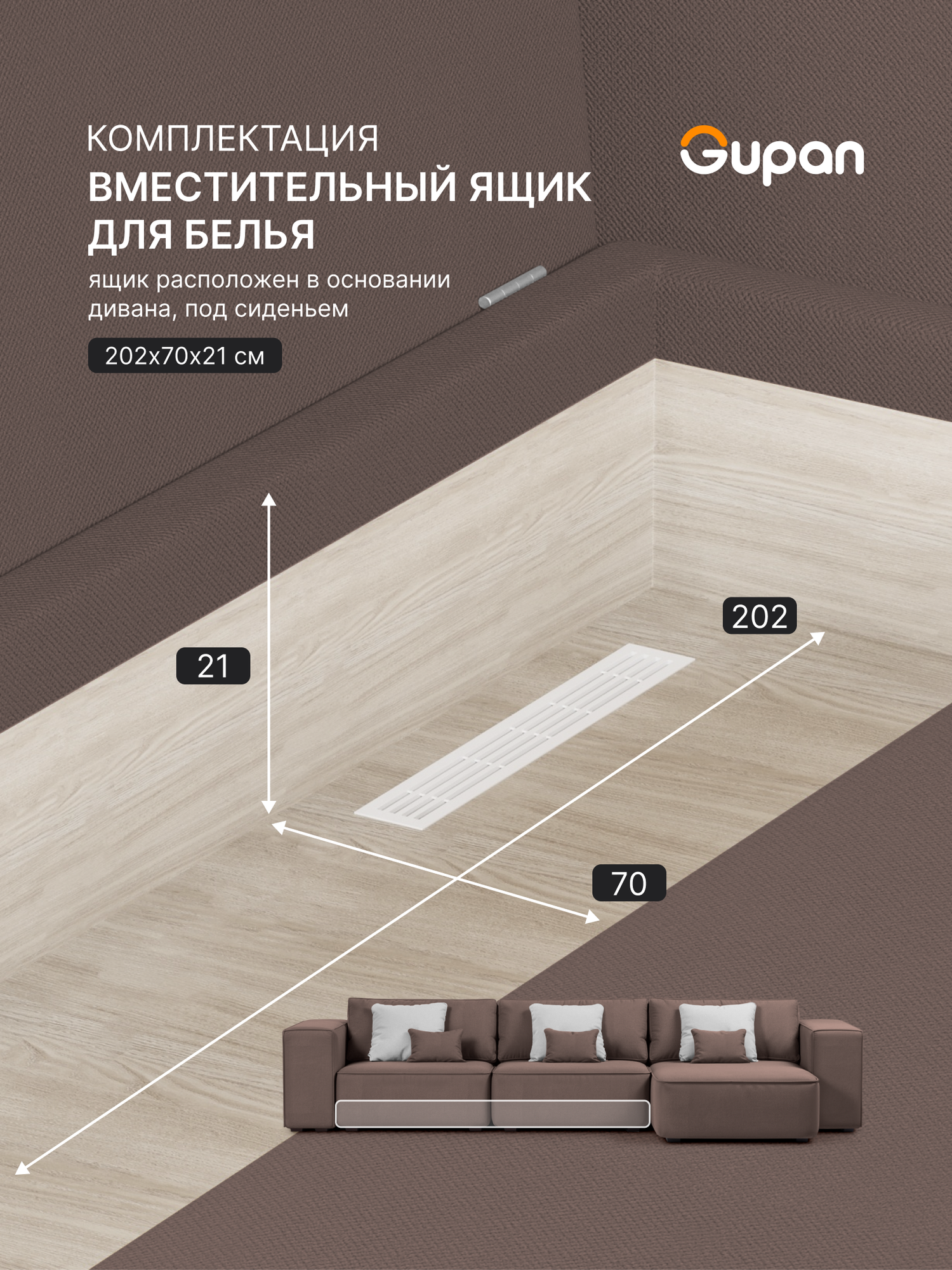 Диван угловой Gupan Фабио / Лофт Велюр Amigo Cocoa, раскладной, механизм еврокнижка, беспружинный, с ящиком для белья