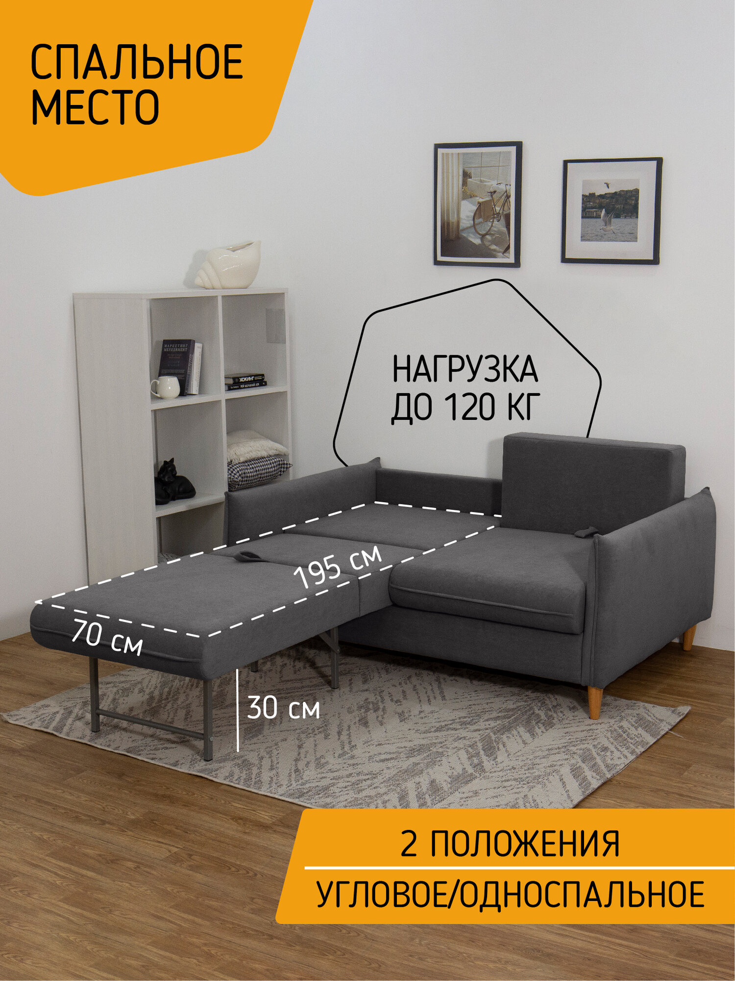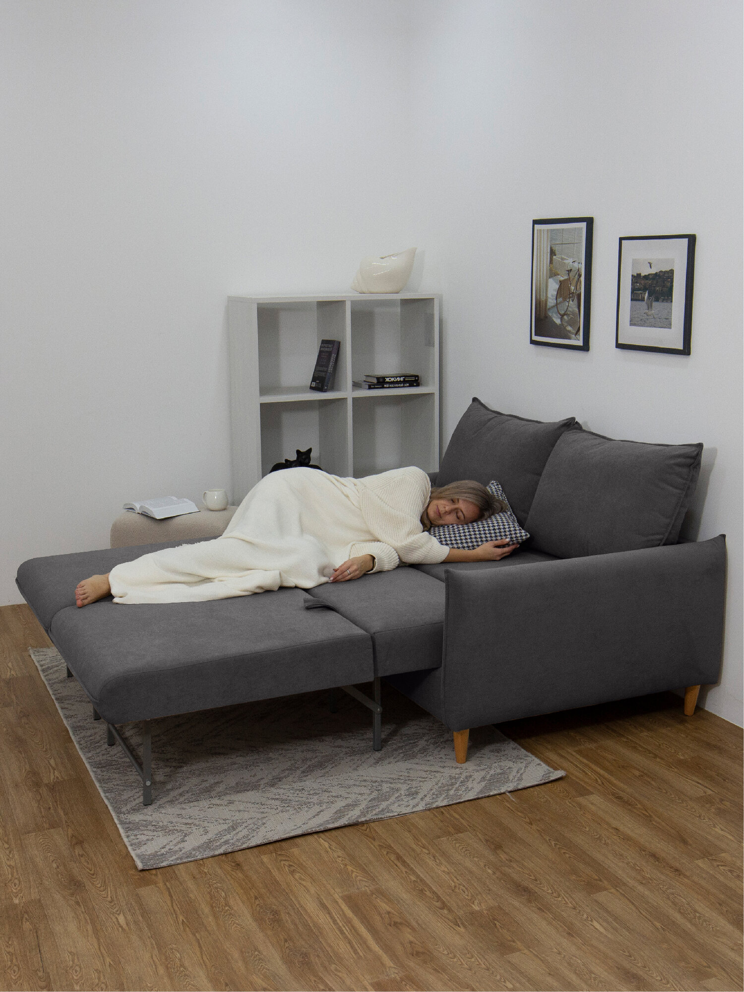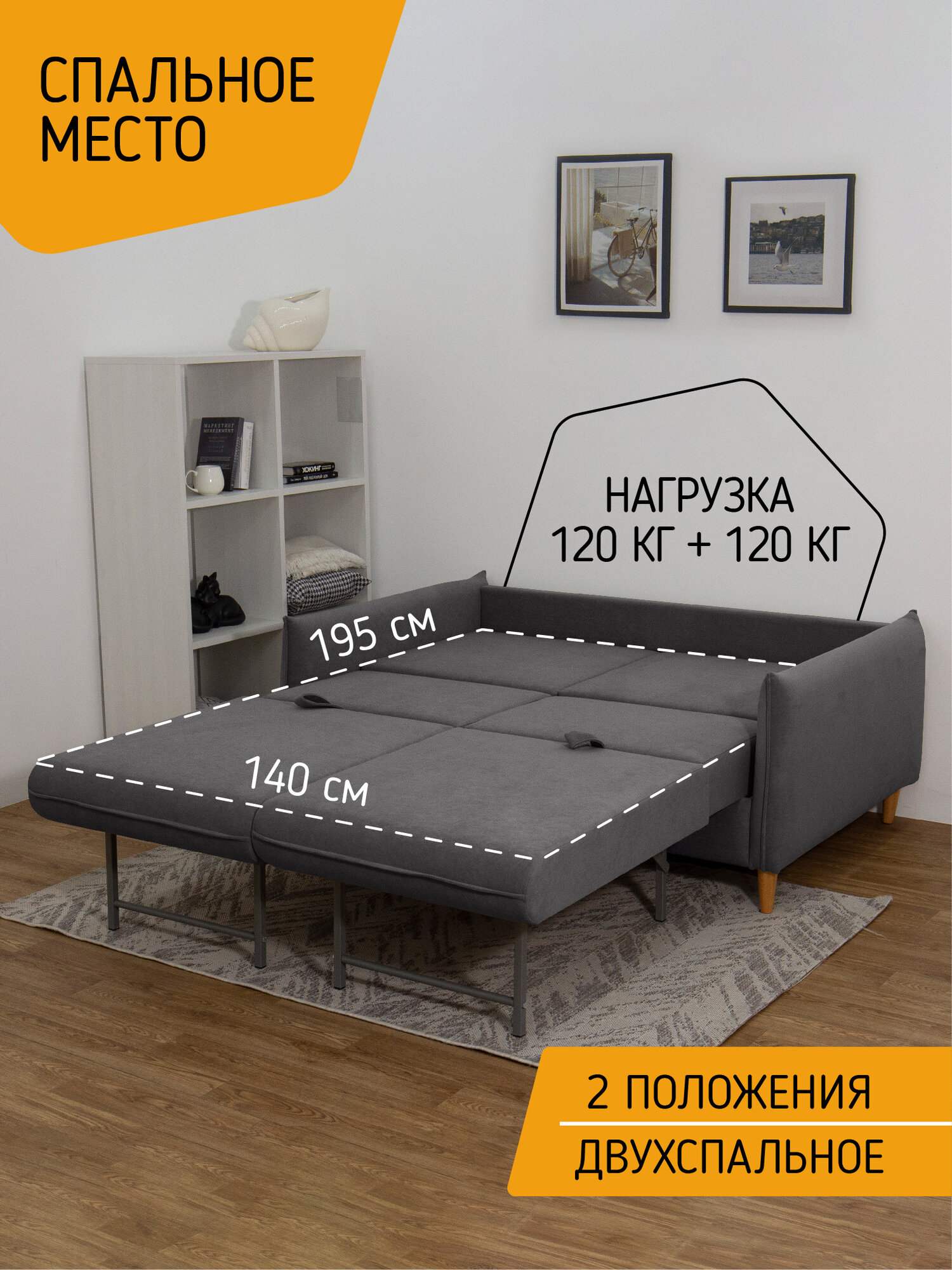 Купить Диван-кровать KRASDIVAN Кайса, размер 160 см, со спальным местом, велюр Бахрия 41 темно-серый
