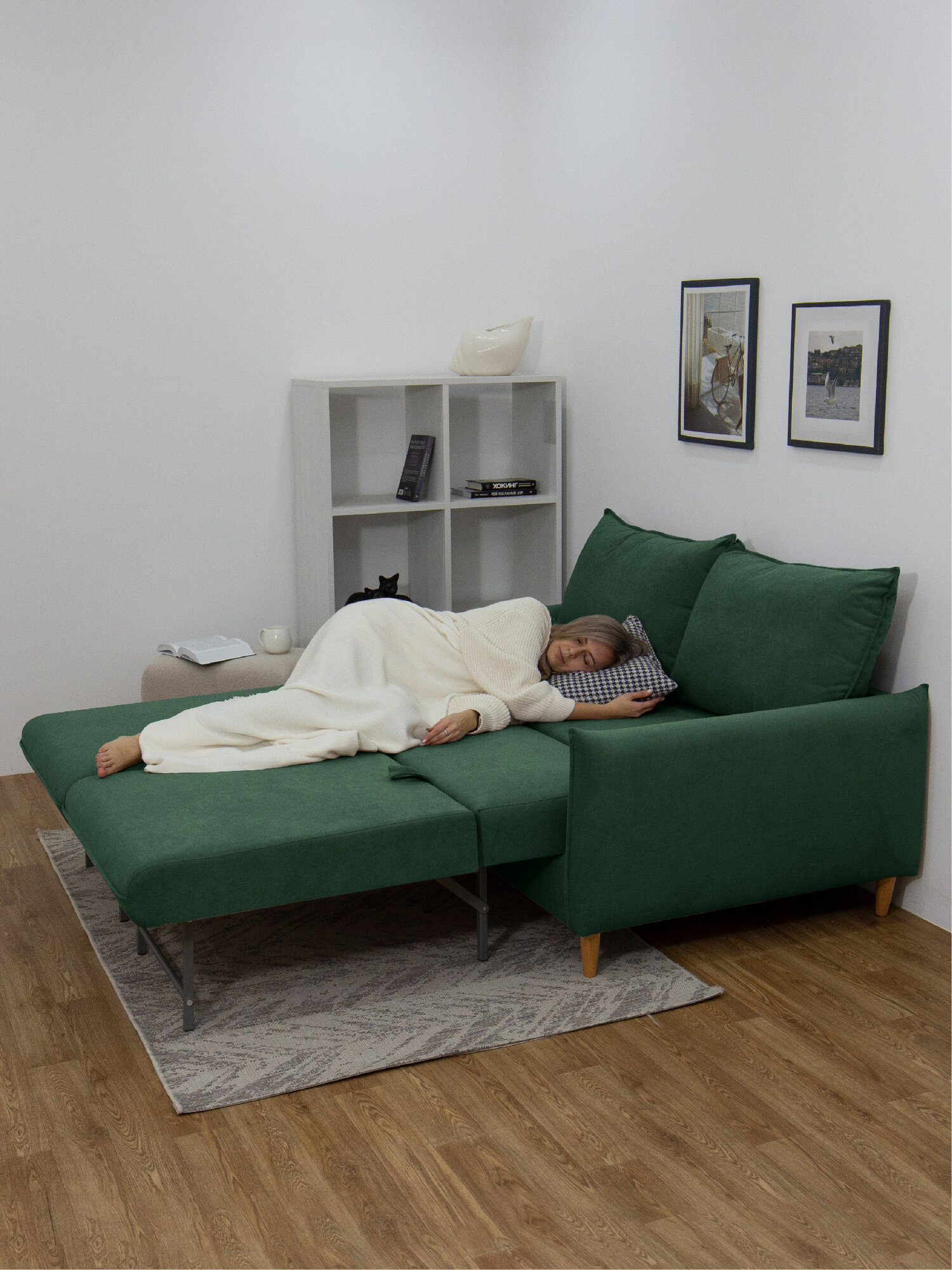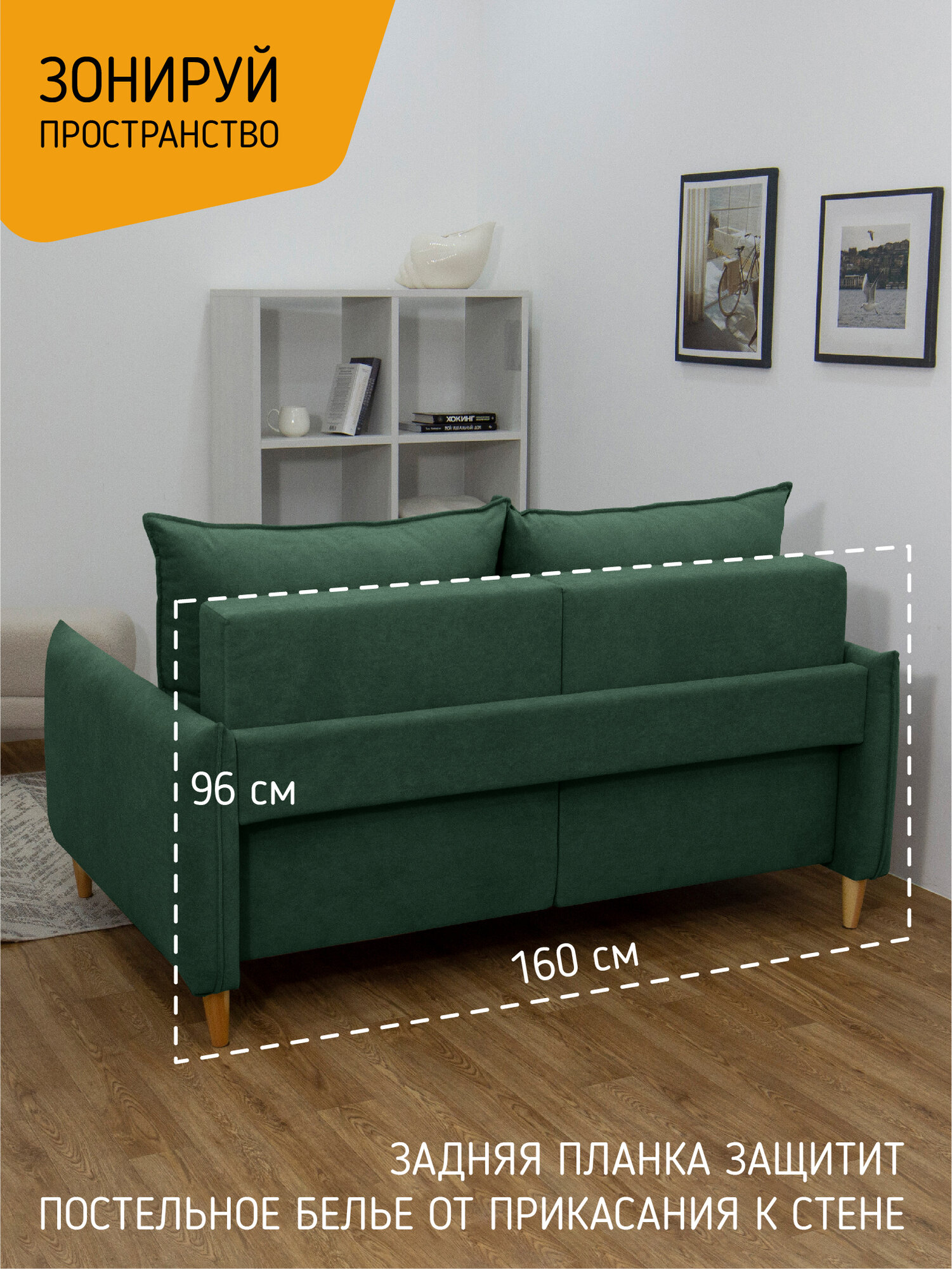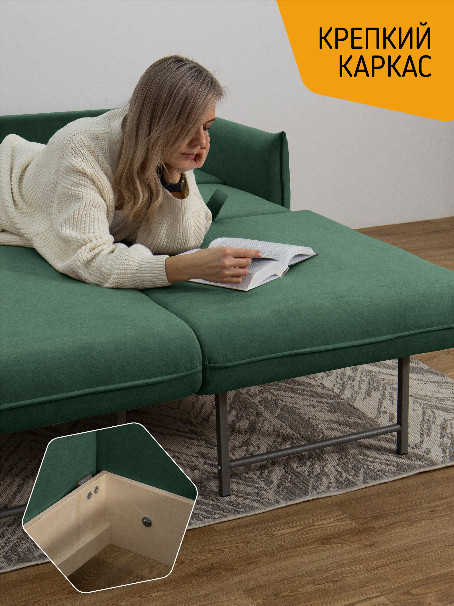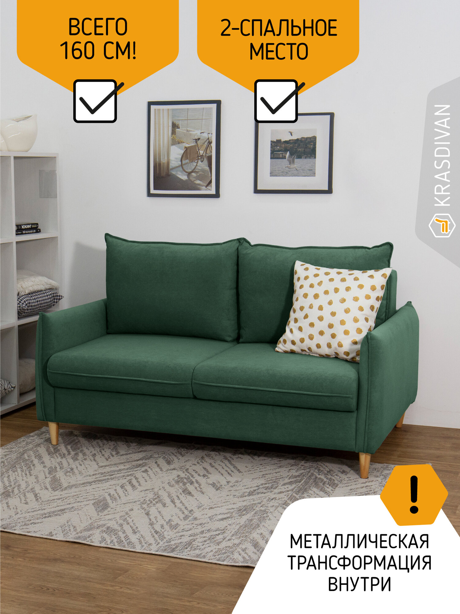Купить Диван-кровать KRASDIVAN Кайса, размер 160 см, со спальным местом, велюр Delta 21 зеленый