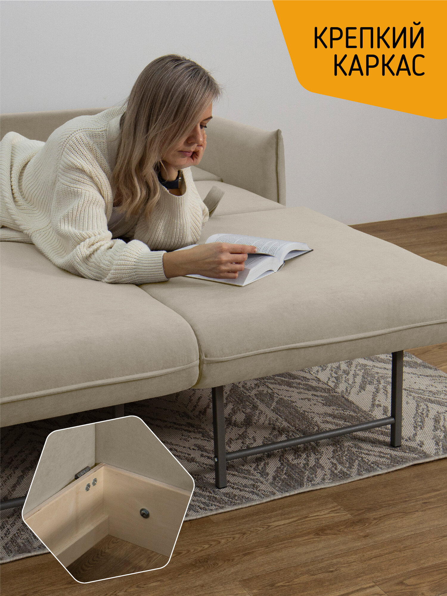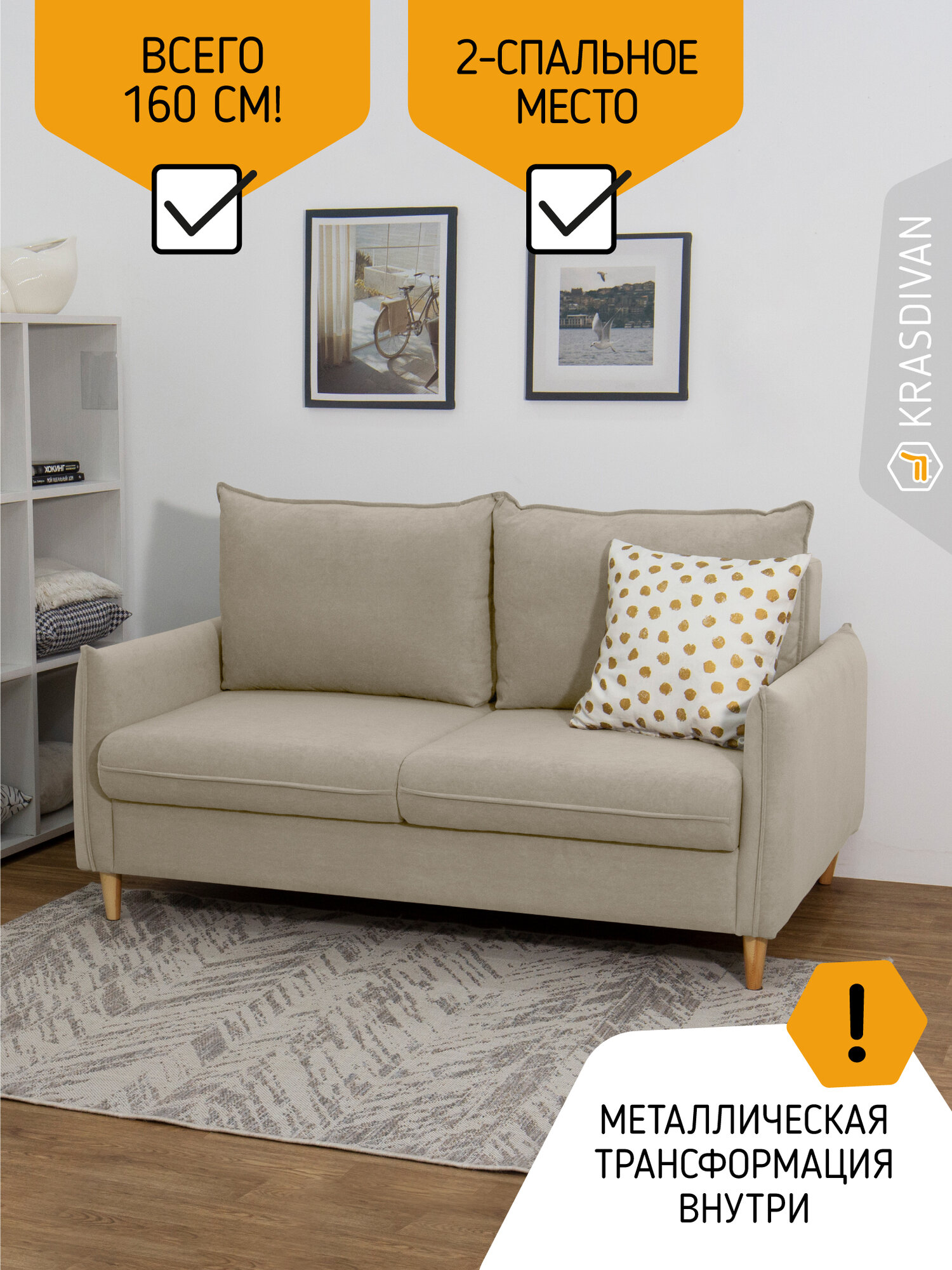Купить Диван-кровать KRASDIVAN Кайса, размер 160 см, со спальным местом, велюр Бахрия 2 светло-бежевый