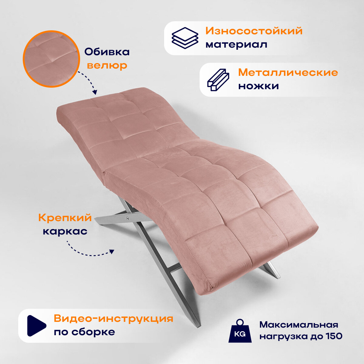 Купить Кушетка анатомическая Квадрат лофт, для наращивания ресниц, косметологическая, ноги серебристый металл, пыльно-розовый