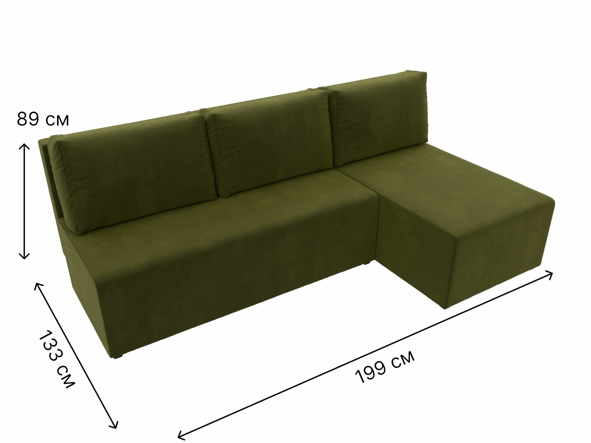 Купить Диван угловой Поло правый угол, микровельвет зеленый