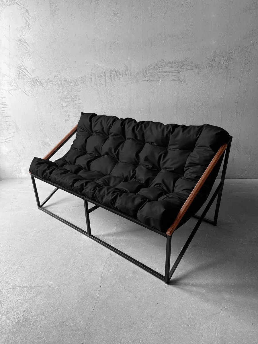 Диван лофт прямой, уличный, в офис, на балкон, на веранду, в гостинную, кухонный, минимализм, Слэш + велюр черный