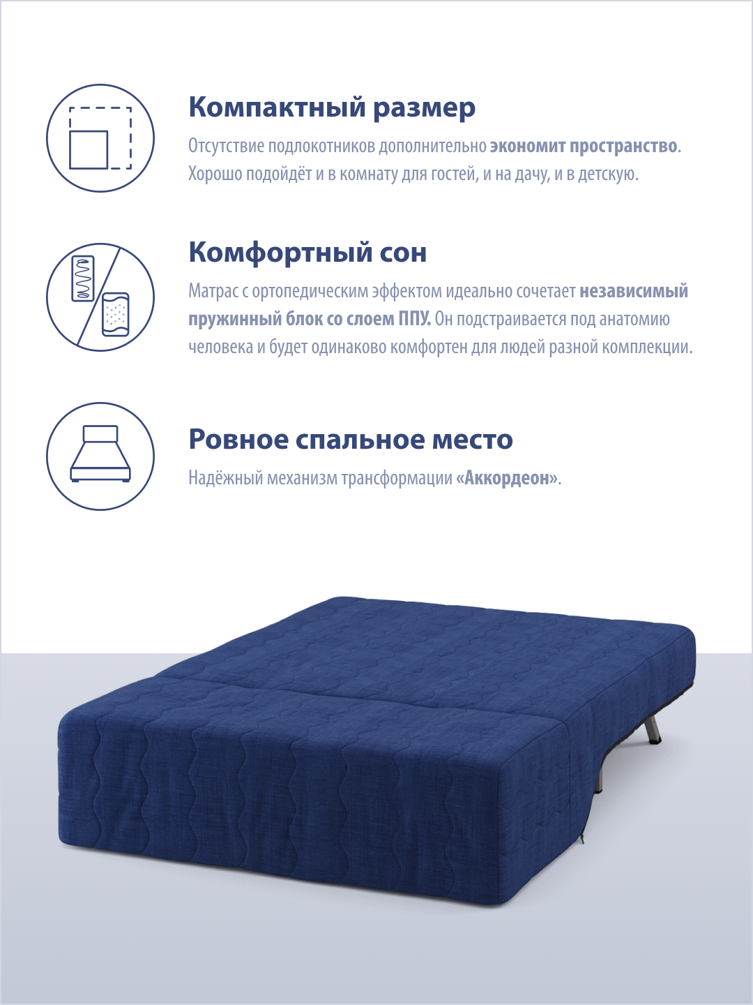 Прямой диван кровать Цвет Диванов Мартин (мини) 125 аккордеон, ортопедический с независимым пружинным блоком