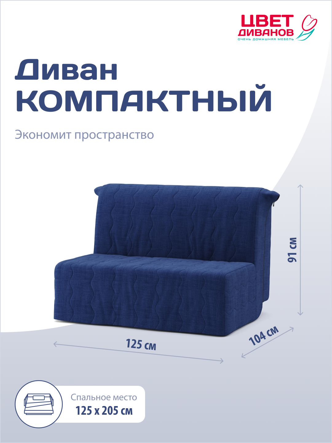 Прямой диван кровать Цвет Диванов Мартин (мини) 125 аккордеон, ортопедический с независимым пружинным блоком