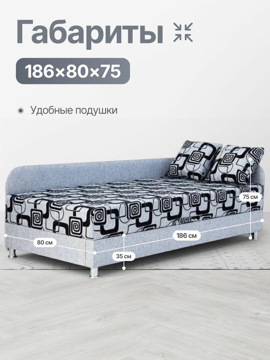 Тахта, кровать односпальная, София серая рогожка квадраты, левый угол интересное: