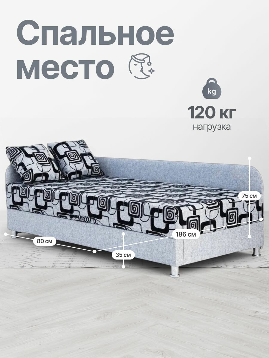 Тахта, кровать односпальная, София серая рогожка квадраты, левый угол