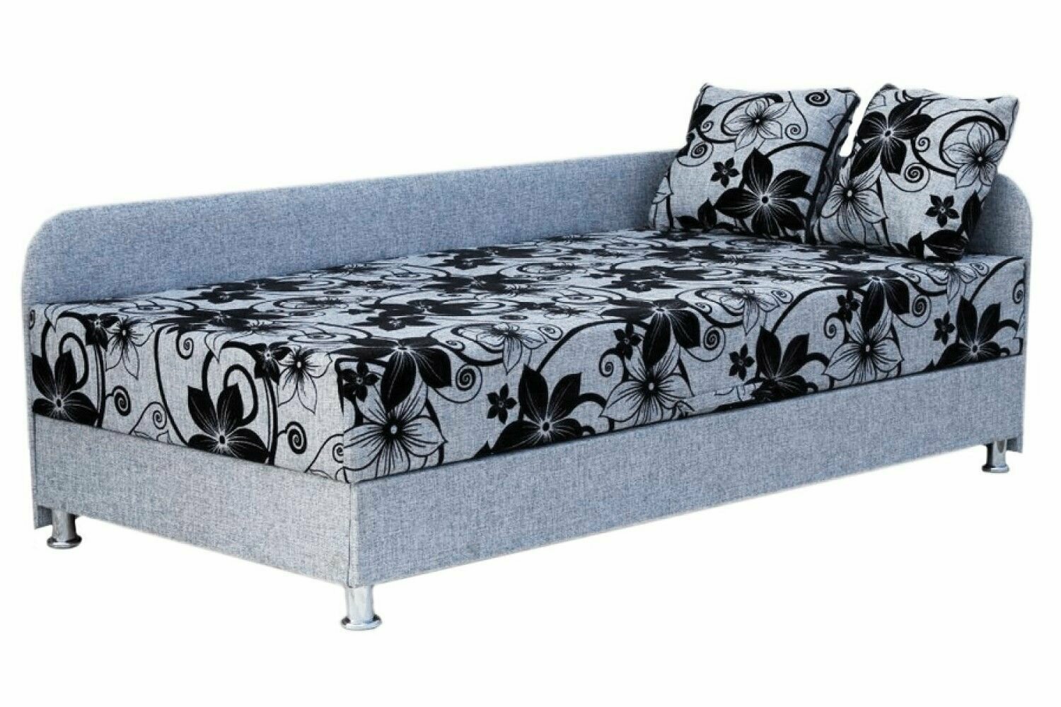 Тахта, кровать односпальная, София серая рогожка квадраты, левый угол