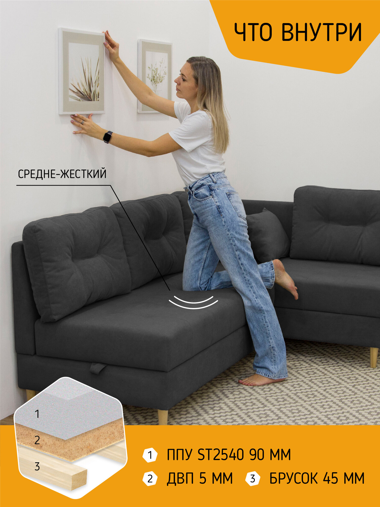 Купить Модульный угловой диван Чарли KRASDIVAN, прямой и угловой модули, велюр Бахрия 41 темно-серый