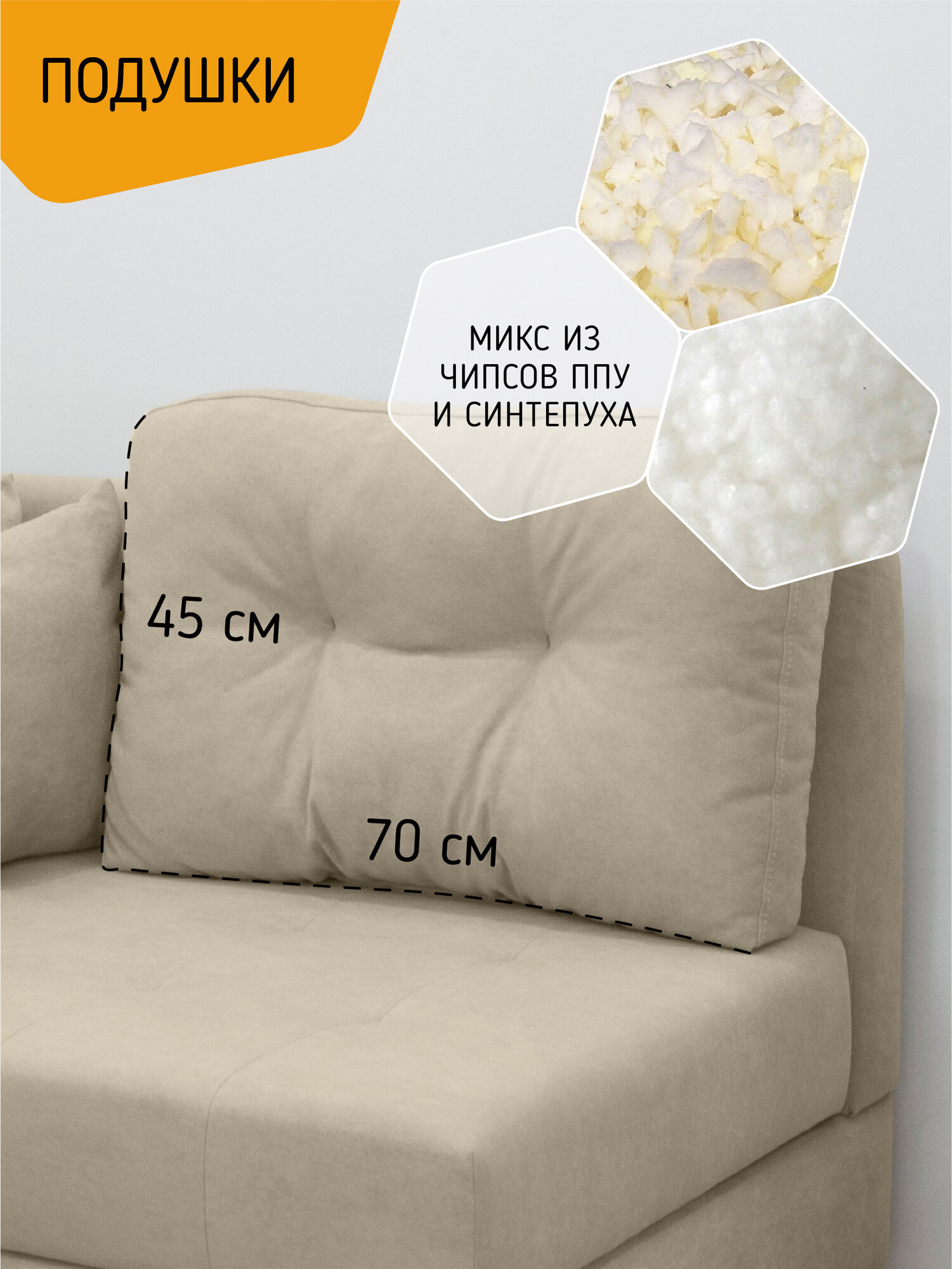 Купить Модульный угловой диван Чарли KRASDIVAN, прямой и угловой модули, велюр Бахрия 2 бежевый