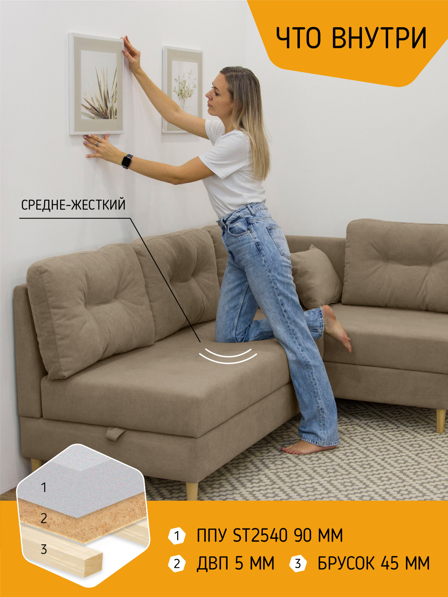 Модульный угловой диван Чарли KRASDIVAN, прямой и угловой модули, велюр Бахрия 42 желтый