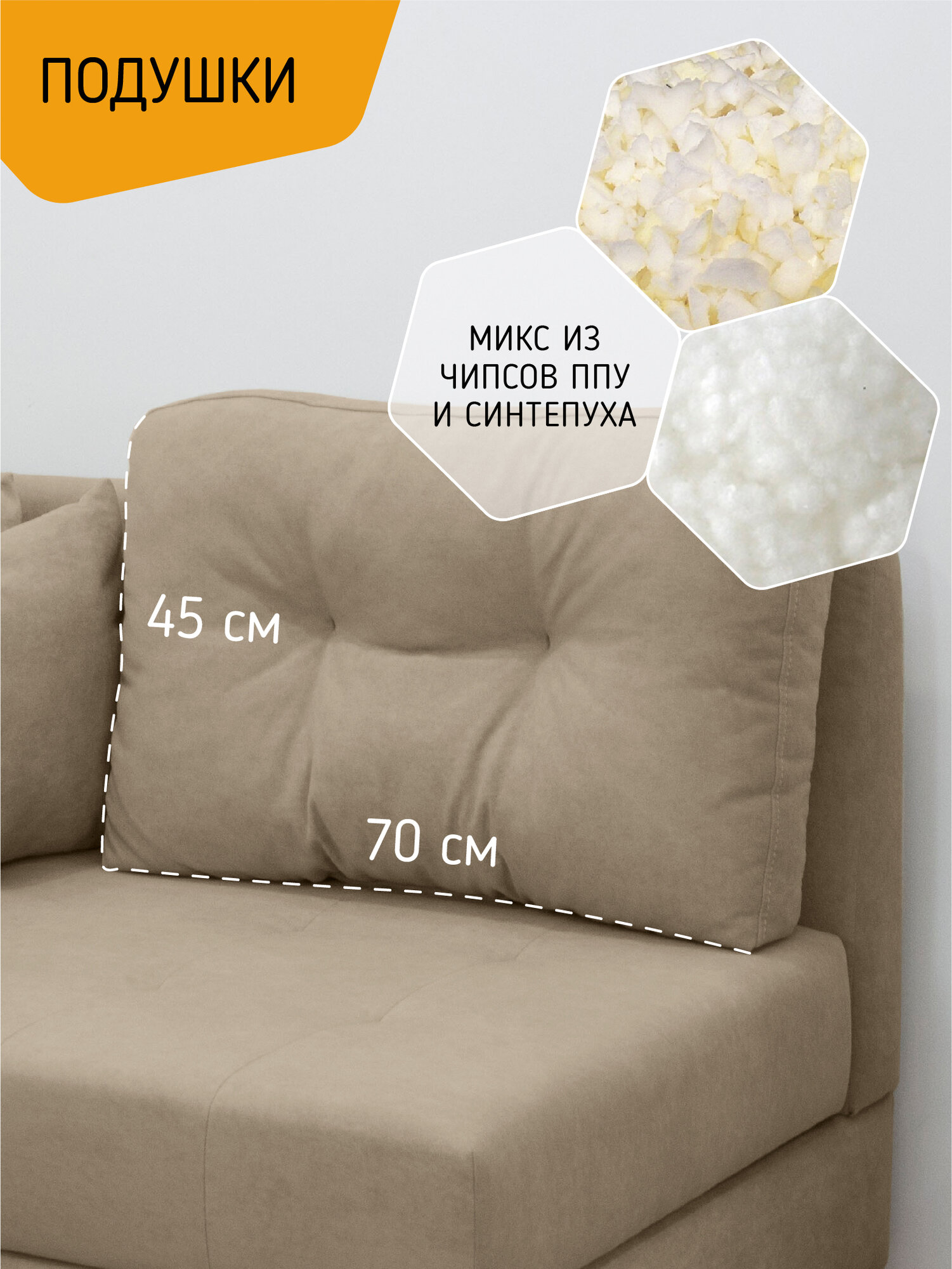 Модульный угловой диван Чарли KRASDIVAN, прямой и угловой модули, велюр Бахрия 3 светло-коричневый
