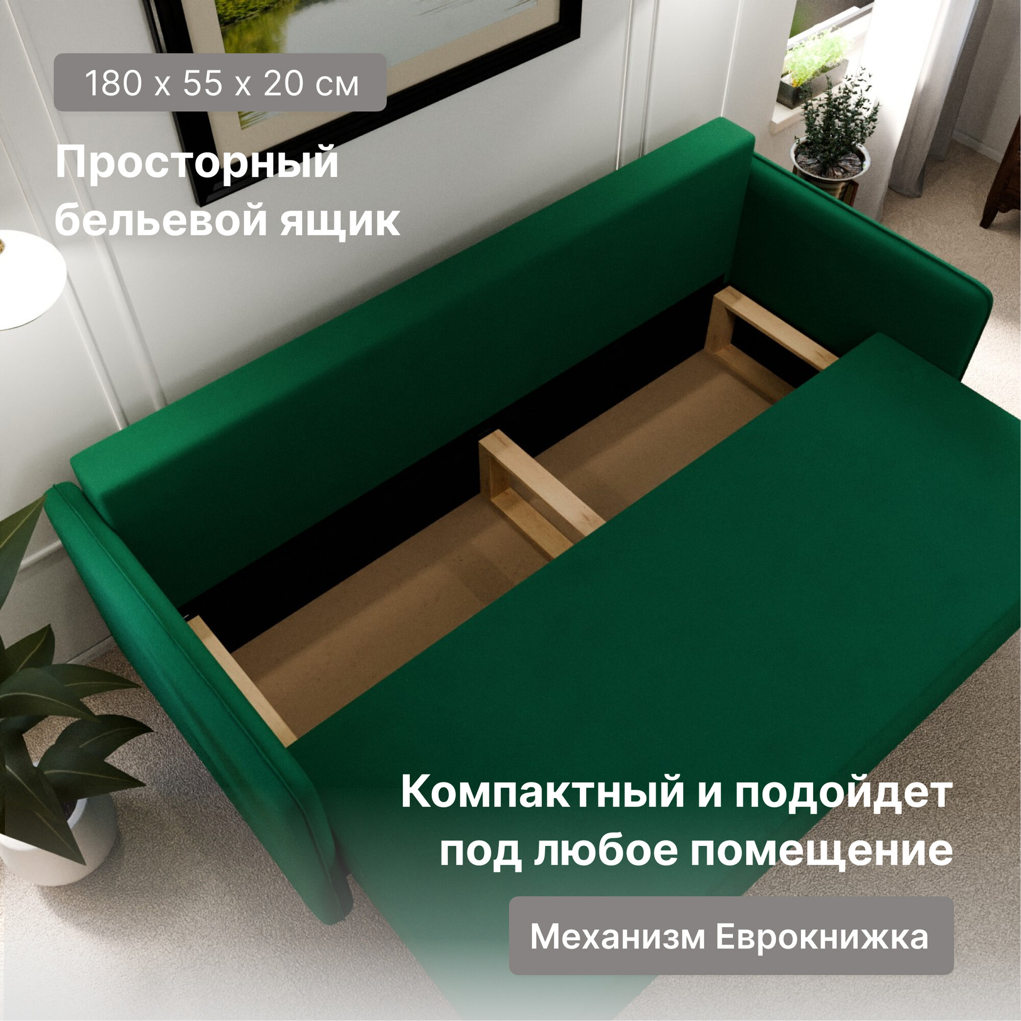 Купить Диван, диван-кровать, диван раскладной "Лотос" НПБ, Велютта люкс 33, размеры 210х80х100, зеленый