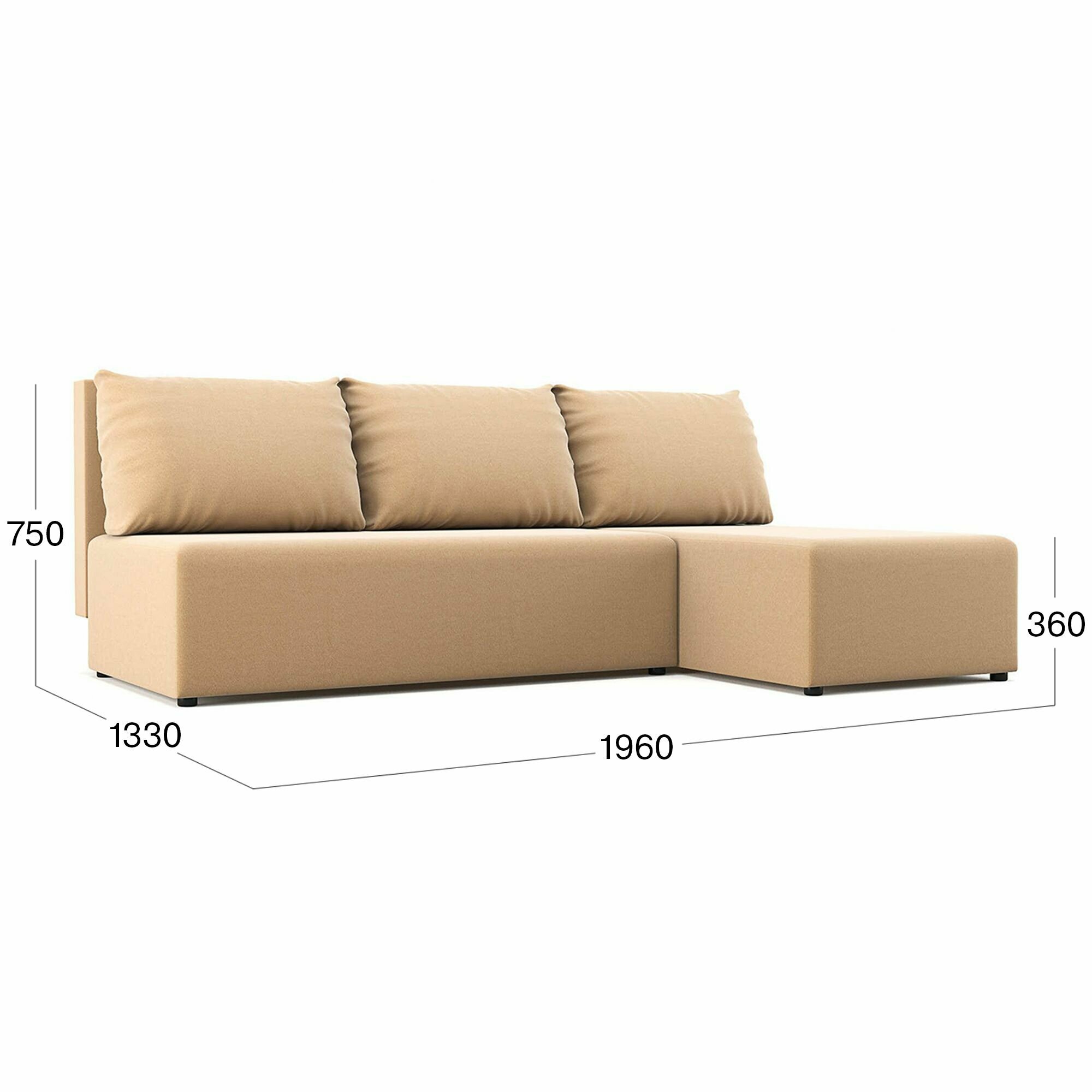 Угловой диван, диван-кровать в гостиную раскладной Beneli леон, светло-бежевый, Рогожка, механизм Еврокнижка, 196х133х75см, 1шт