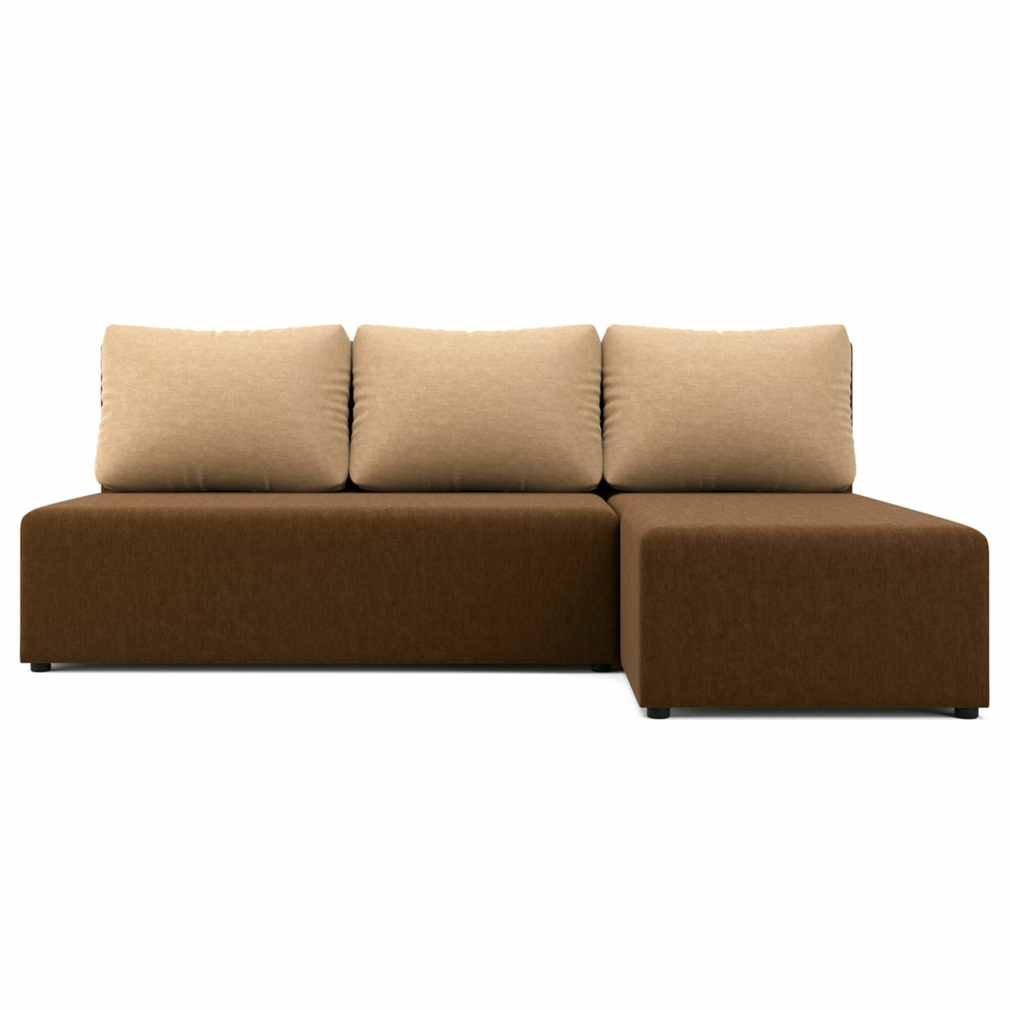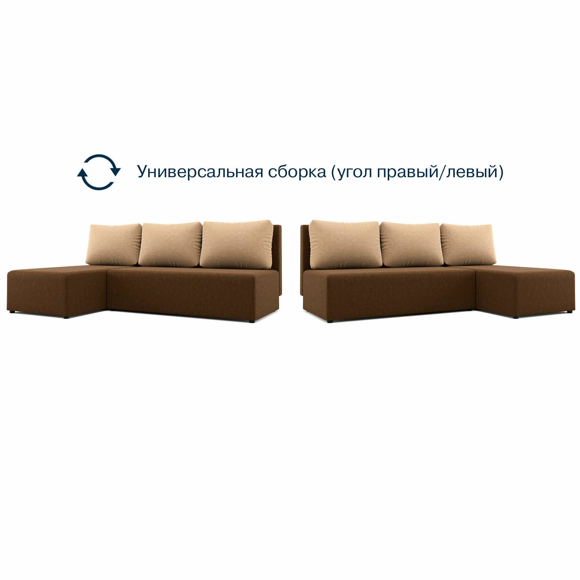 Купить Угловой диван, диван-кровать в гостиную раскладной Beneli леон, бежевый; коричневый, Микровелюр, механизм Еврокнижка, 196х133х75см, 1шт
