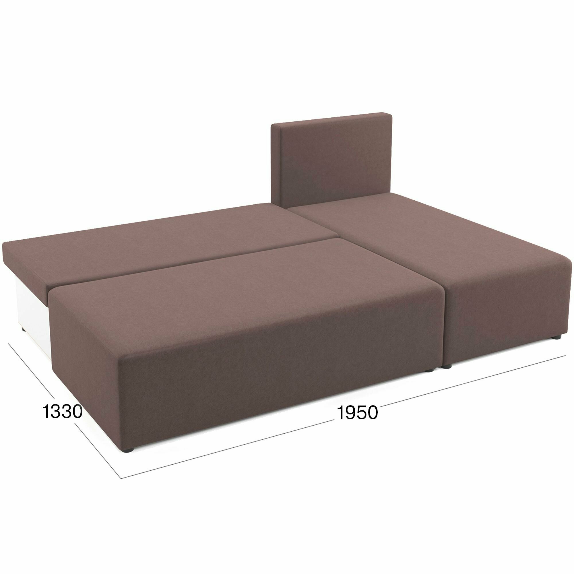 Угловой диван, диван-кровать в гостиную раскладной Beneli леон, бежевый; коричневый, Микровелюр, механизм Еврокнижка, 196х133х75см, 1шт