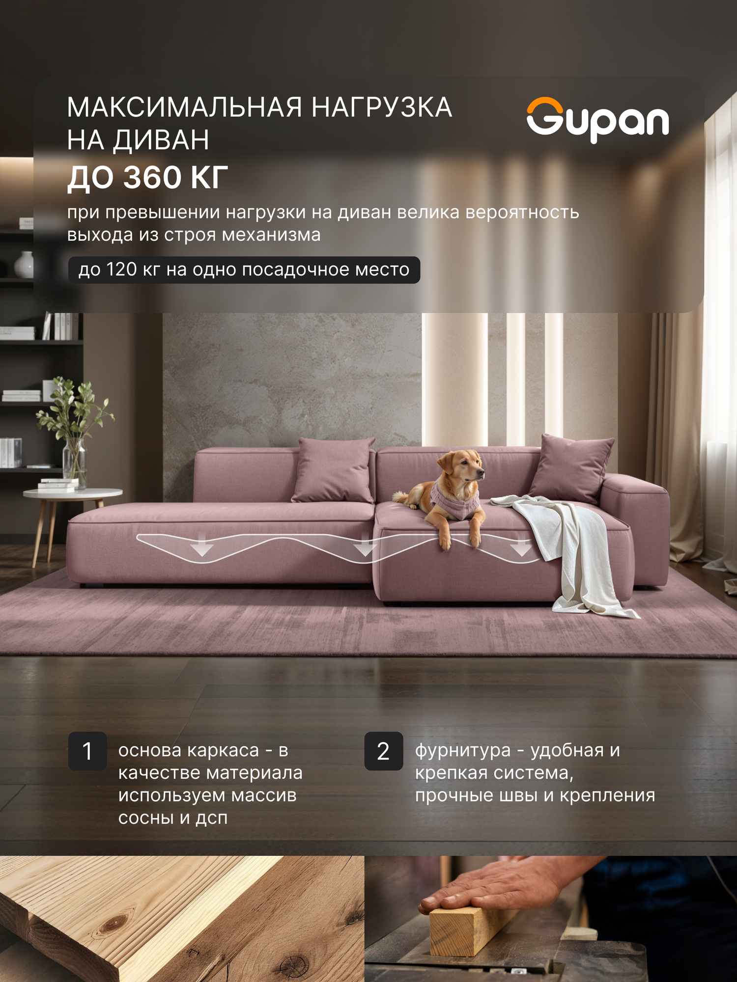 Диван угловой Gupan Flos Велюр Amigo Dimrose, диван раскладной, механизм еврокнижка, беспружинный, с ящиком для белья, в гостиную, лофт