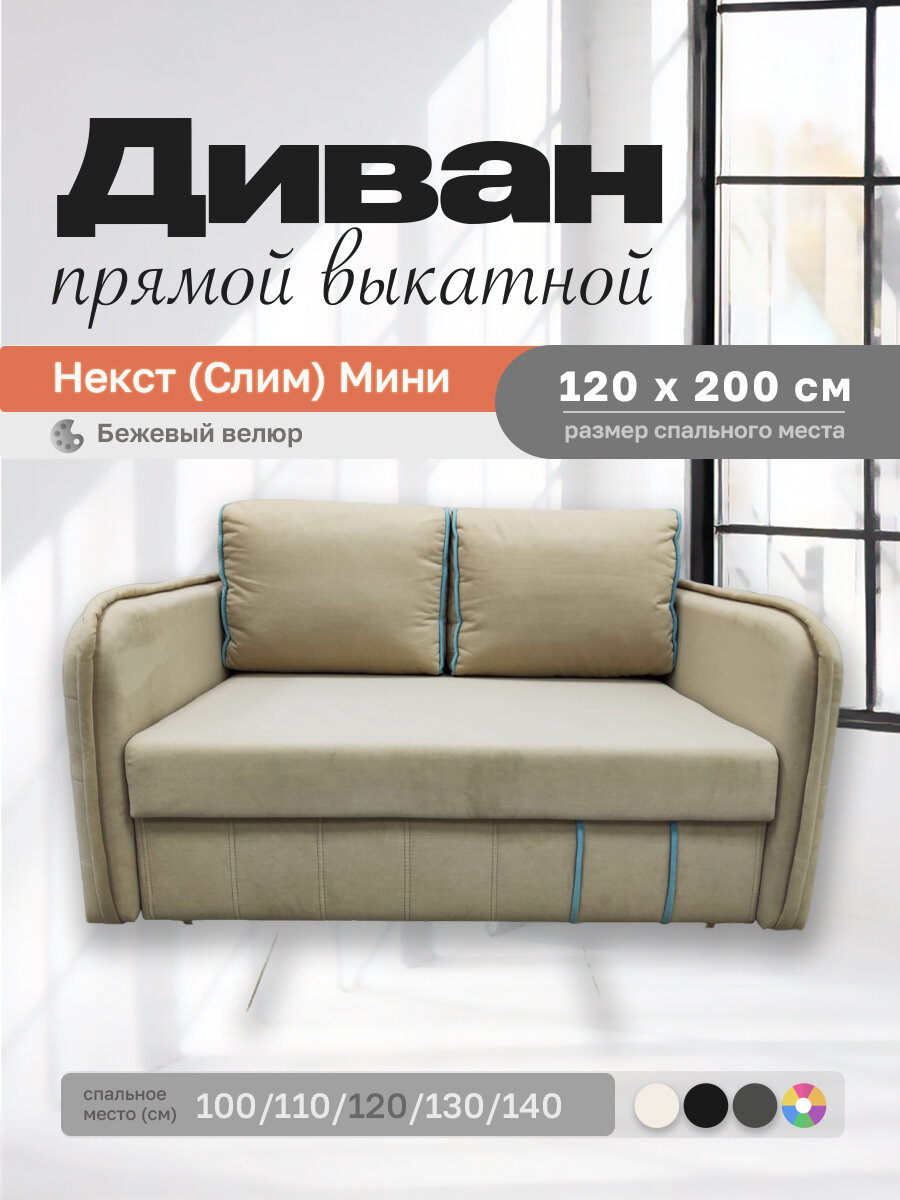 Купить Прямой диван Некст (Слим) Мини 120 Бежевый велюр, выкатной, 140х110х80 см, с ящиком для белья