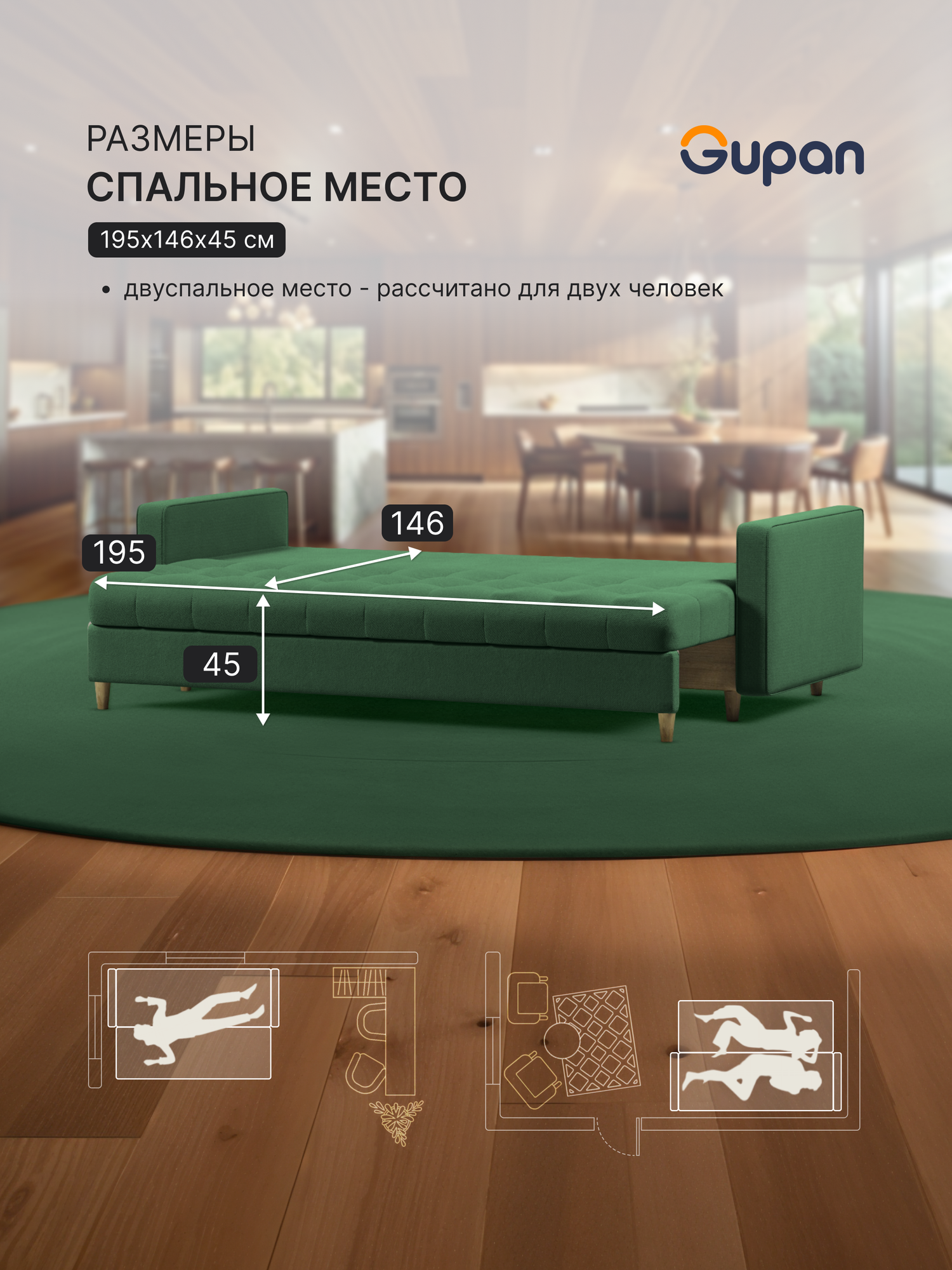 СохранитьДиван кровать Gupan Итэн Велюр Amigo Green, раскладной, механизм пантограф, беспружинный, с ящиком для белья интересное: