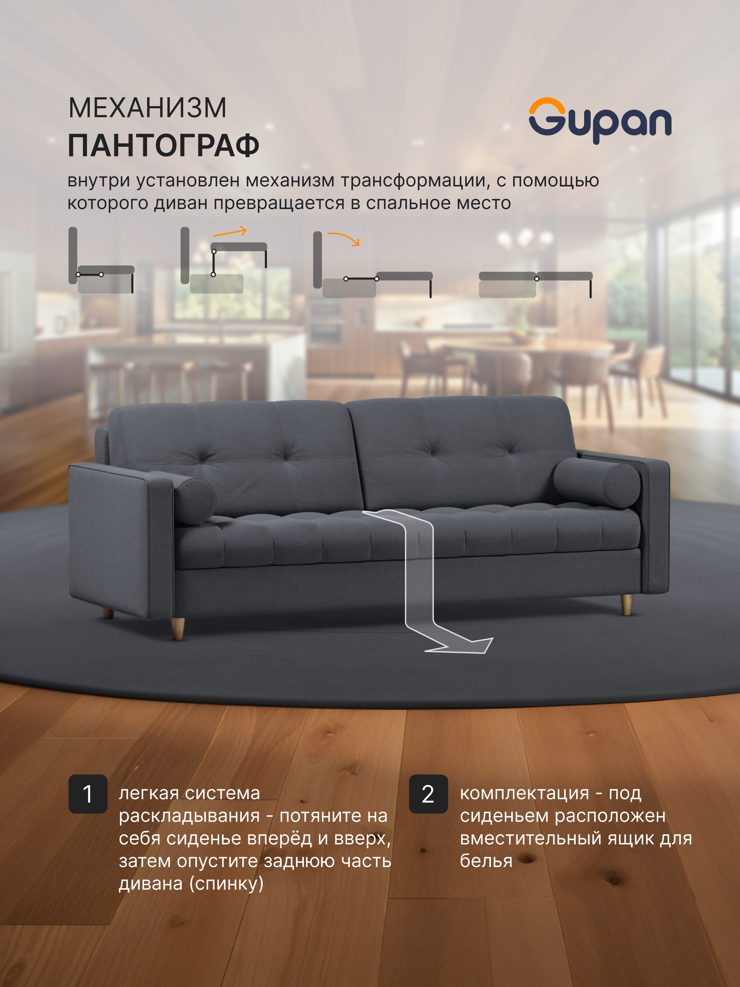 СохранитьДиван кровать Gupan Итэн Велюр Amigo Grafit, раскладной, механизм пантограф, беспружинный, с ящиком для белья интересное: