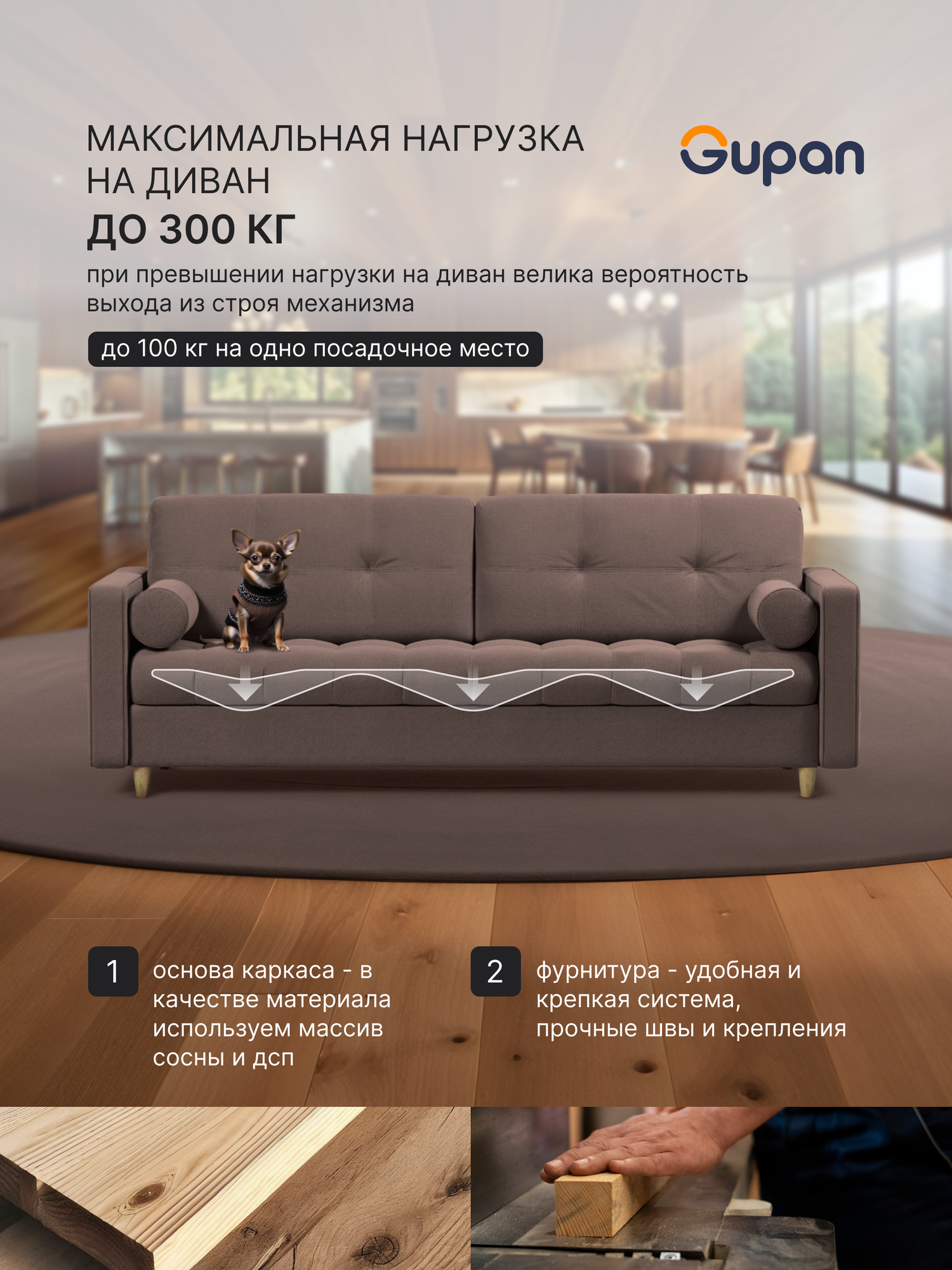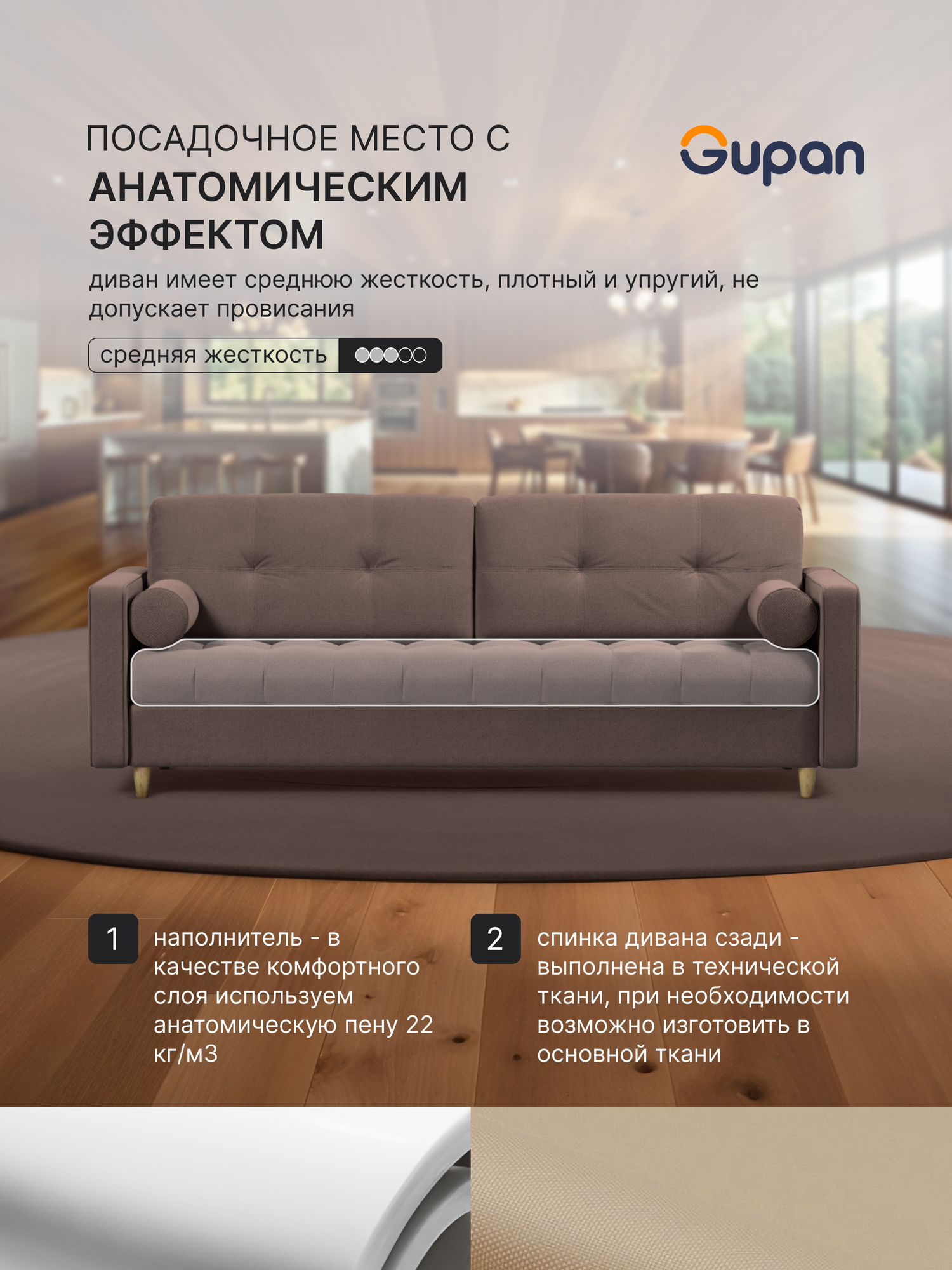 Диван кровать Gupan Итэн Велюр Amigo Cocoa, раскладной, механизм пантограф, беспружинный, с ящиком для белья