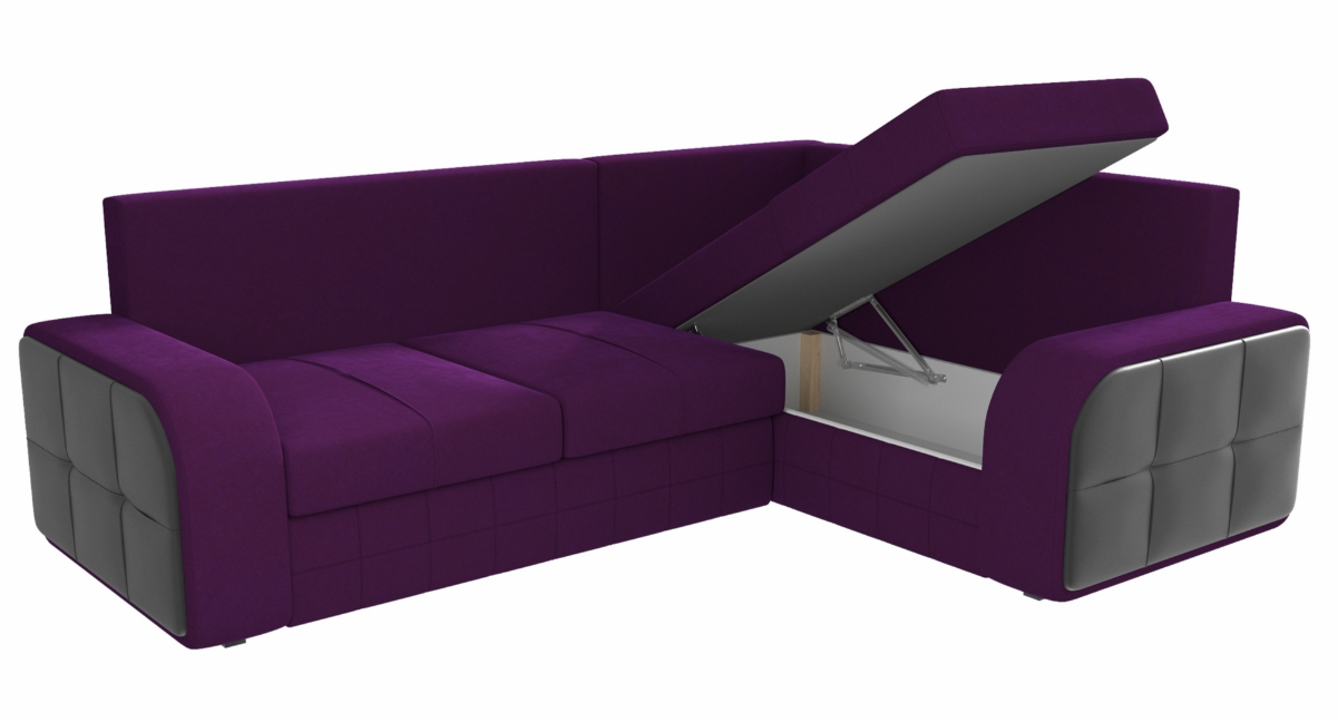 Купить Угловой диван Николь №2 Вельвет Фиолетовый-Экокожа Черный Угол правый Ящик для белья, 268х195х95см
