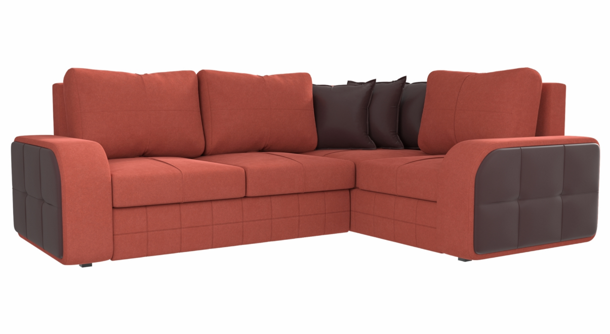 Угловой диван Николь №2 Вельвет Оранжевый-Экокожа Коричневый угол левый