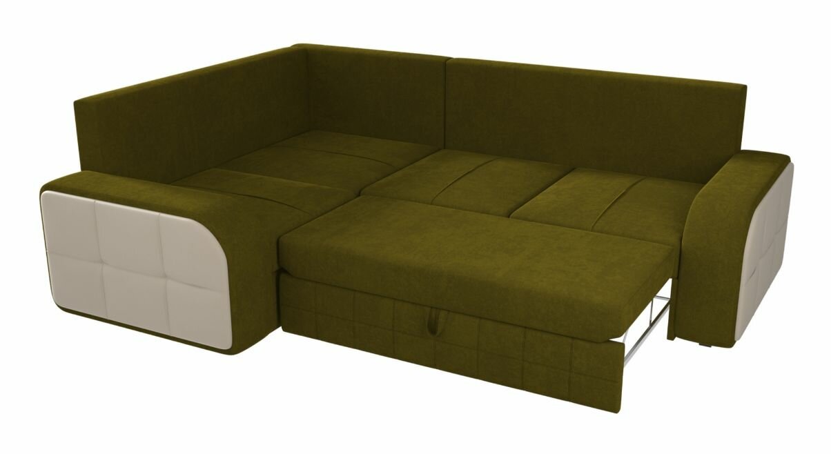Угловой диван Николь №2 Вельвет Зеленый/Экокожа Бежевый Угол правый, Ящик для белья, 268х195х95см