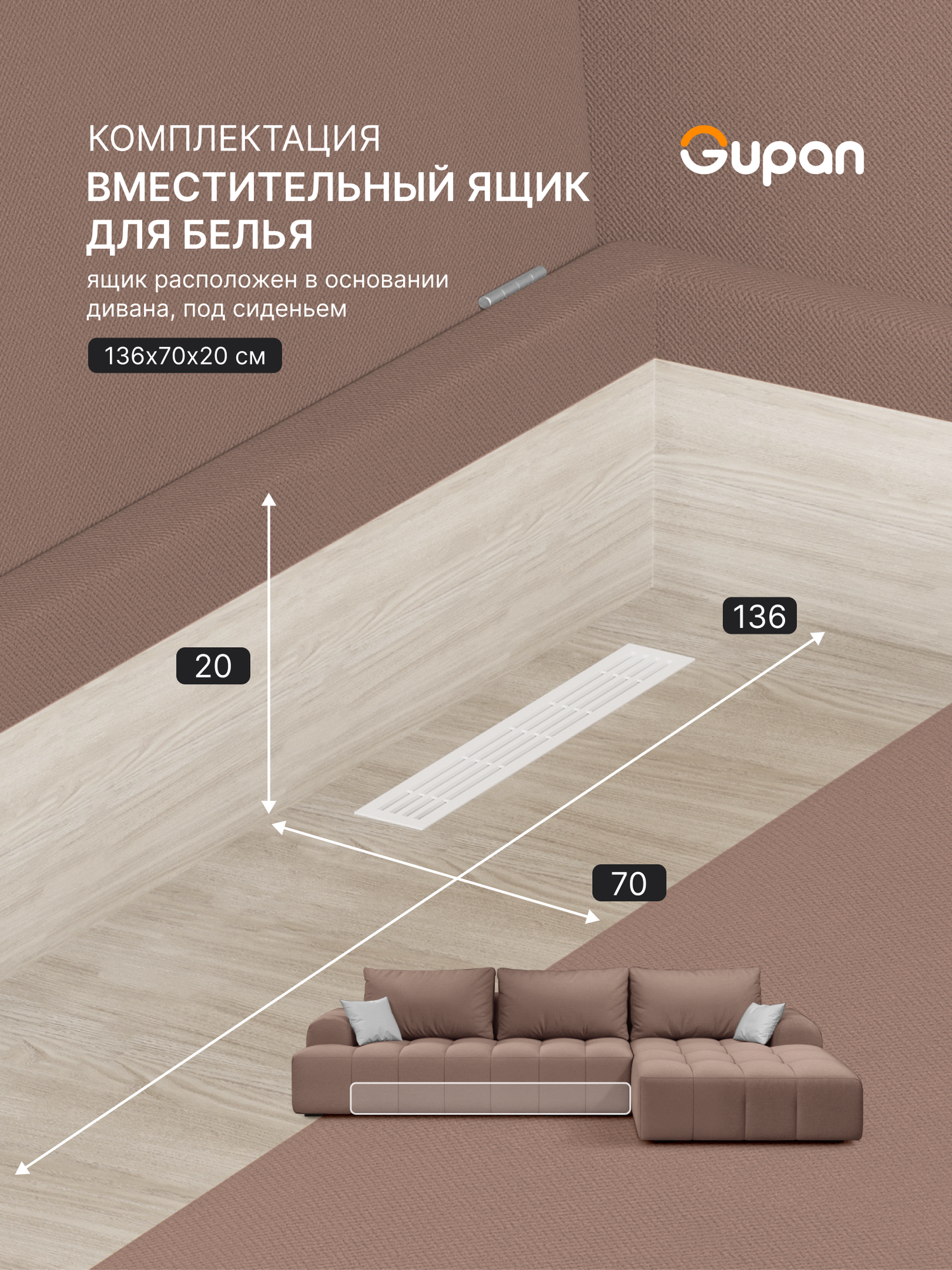 СохранитьДиван угловой Gupan Lasso Велюр Amigo Cocoa, диван раскладной, механизм еврокнижка, беспружинный, с ящиком для белья, в гостиную, лофт интересное: