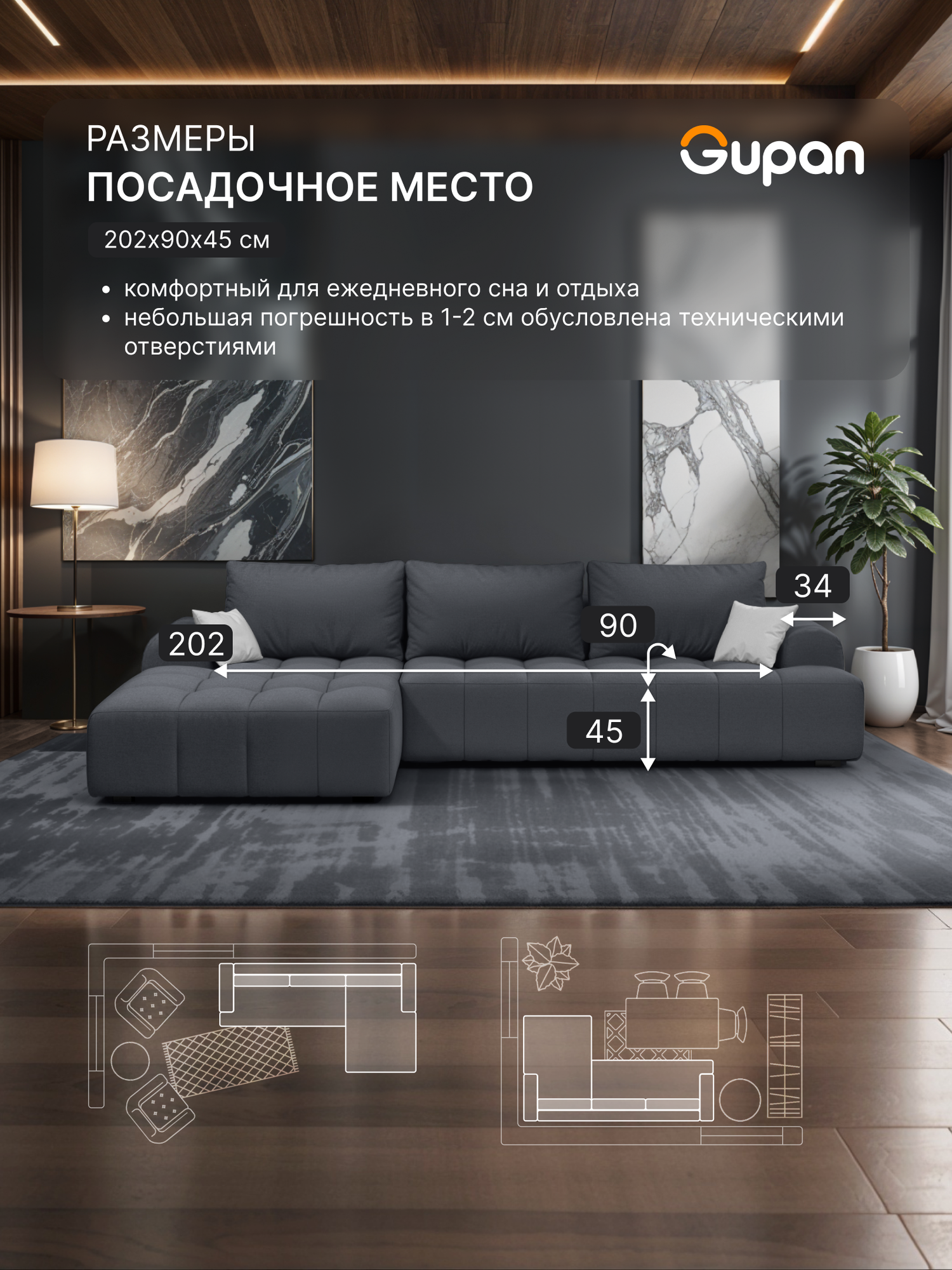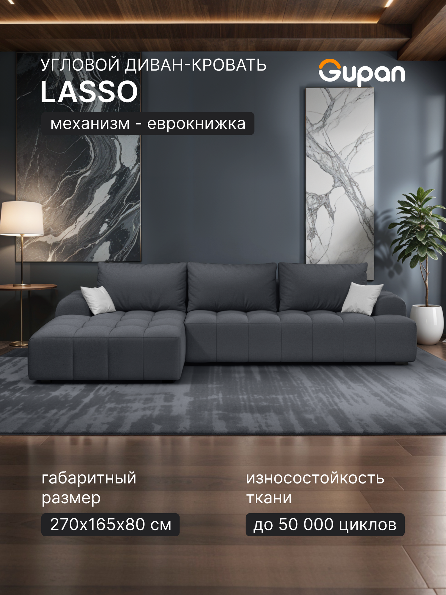 СохранитьДиван угловой Gupan Lasso Велюр Amigo Grafit, диван раскладной, механизм еврокнижка, беспружинный, с ящиком для белья, в гостиную, лофт интересное:
