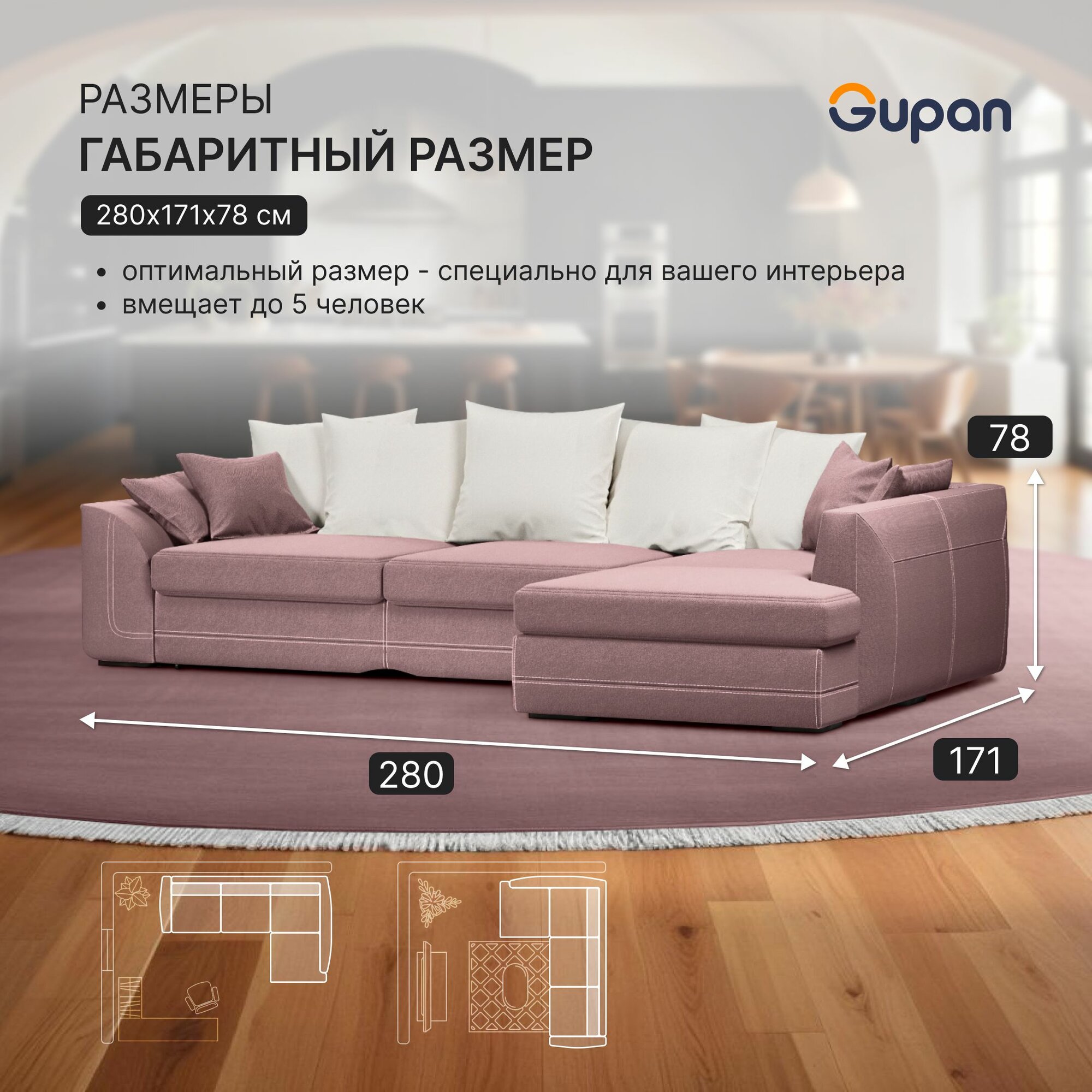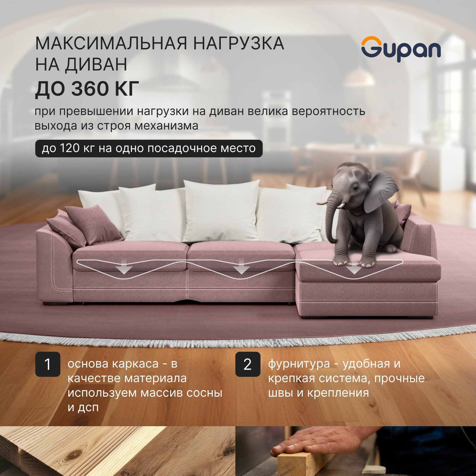 Диван угловой Gupan Калифорния Велюр Amigo Dimrose, раскладной, механизм дельфин, беспружинный, с ящиком для белья