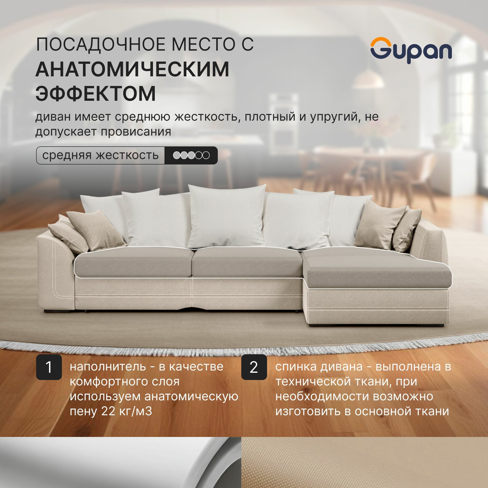 Диван угловой Gupan Калифорния Велюр Amigo Beige, раскладной, механизм дельфин, беспружинный, с ящиком для белья