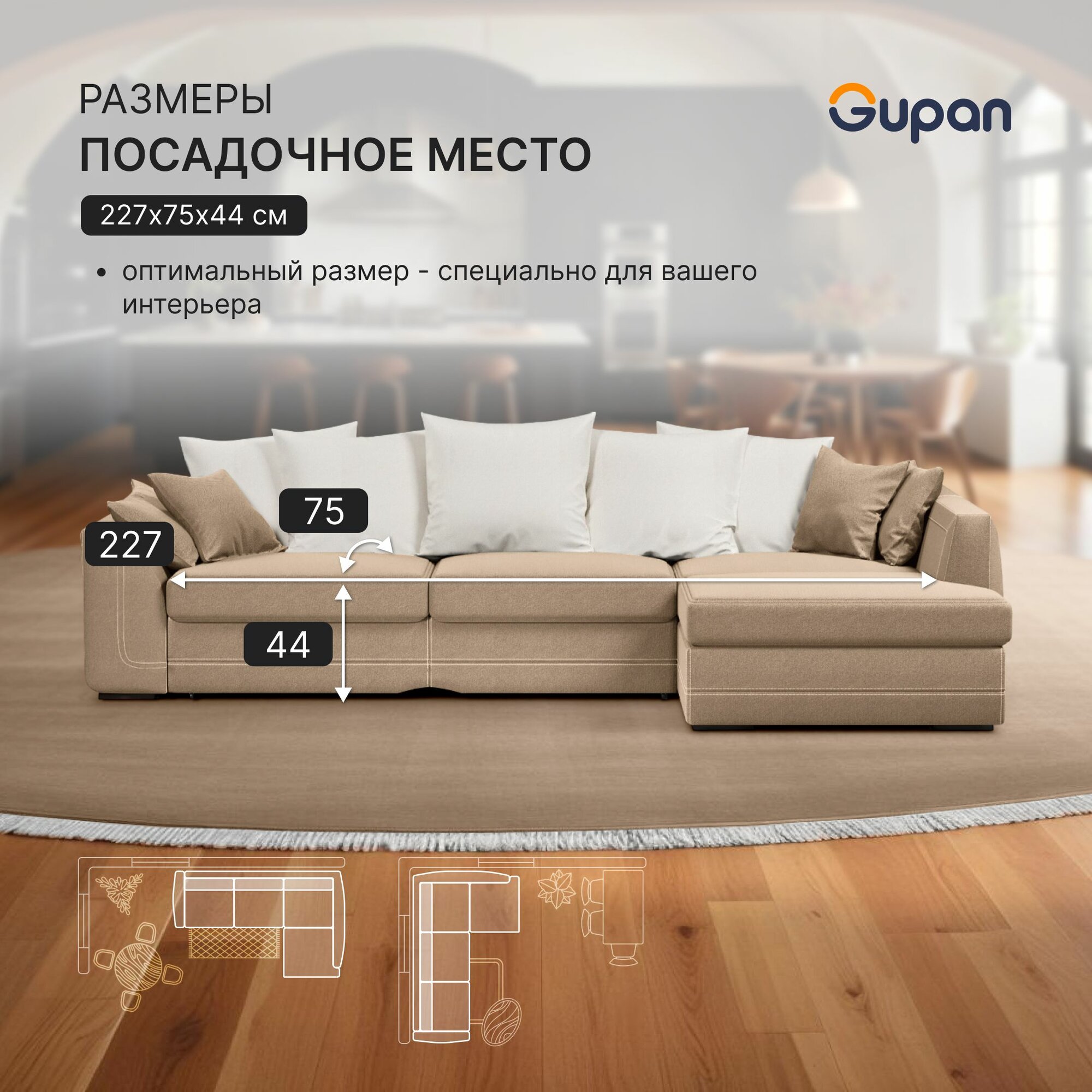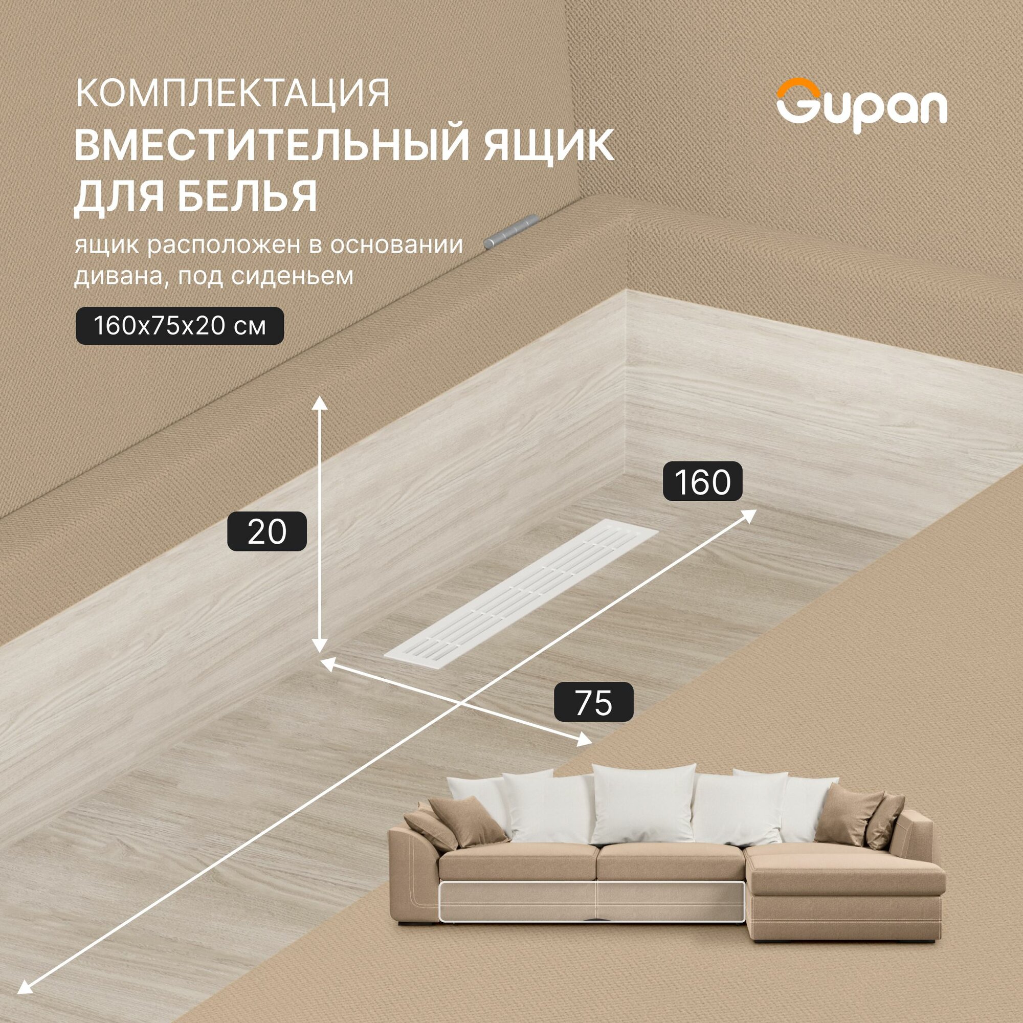 Купить Диван угловой Gupan Калифорния Велюр Amigo Beige, раскладной, механизм дельфин, беспружинный, с ящиком для белья