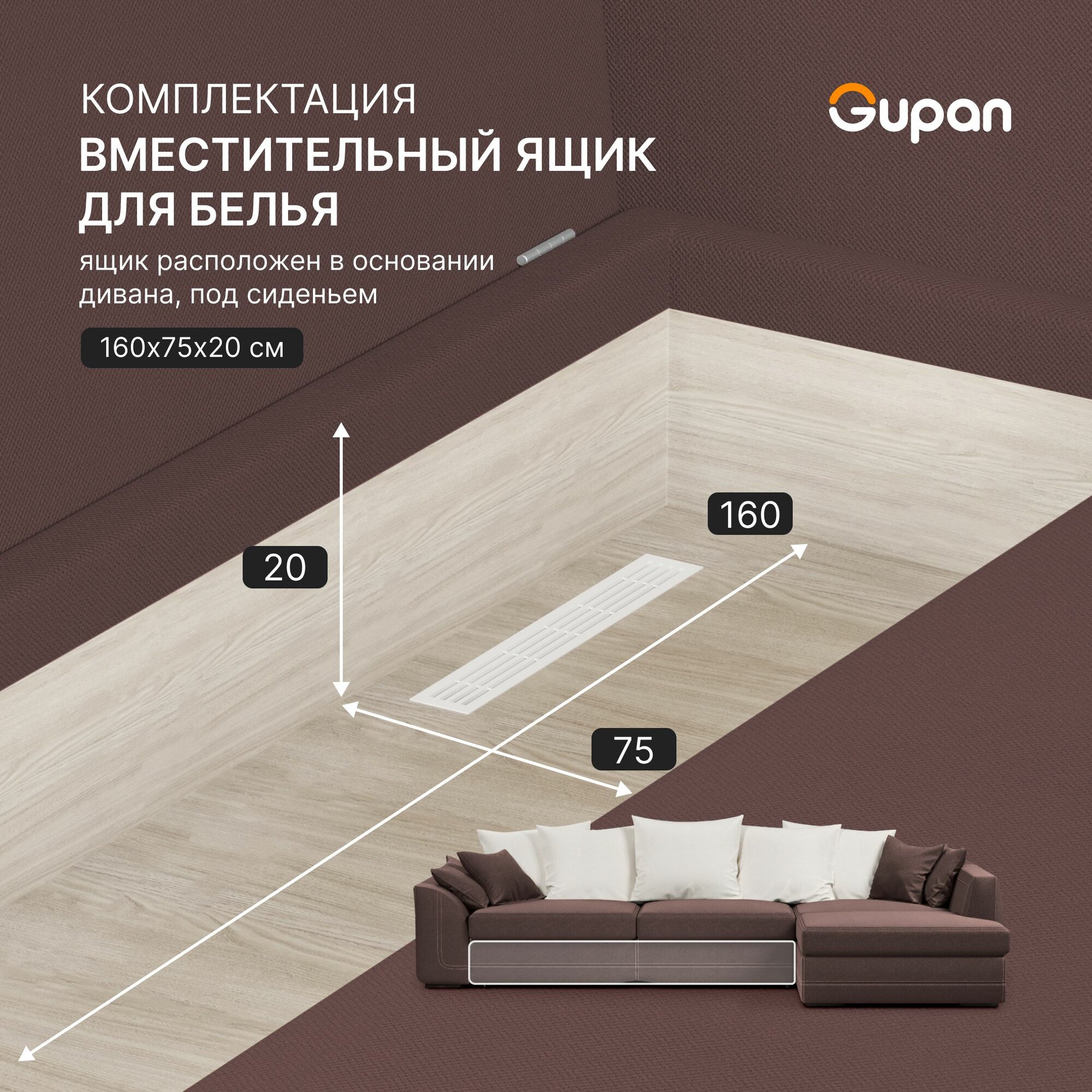 Диван угловой Gupan Калифорния Велюр Amigo Terra, раскладной, механизм дельфин, беспружинный, с ящиком для белья