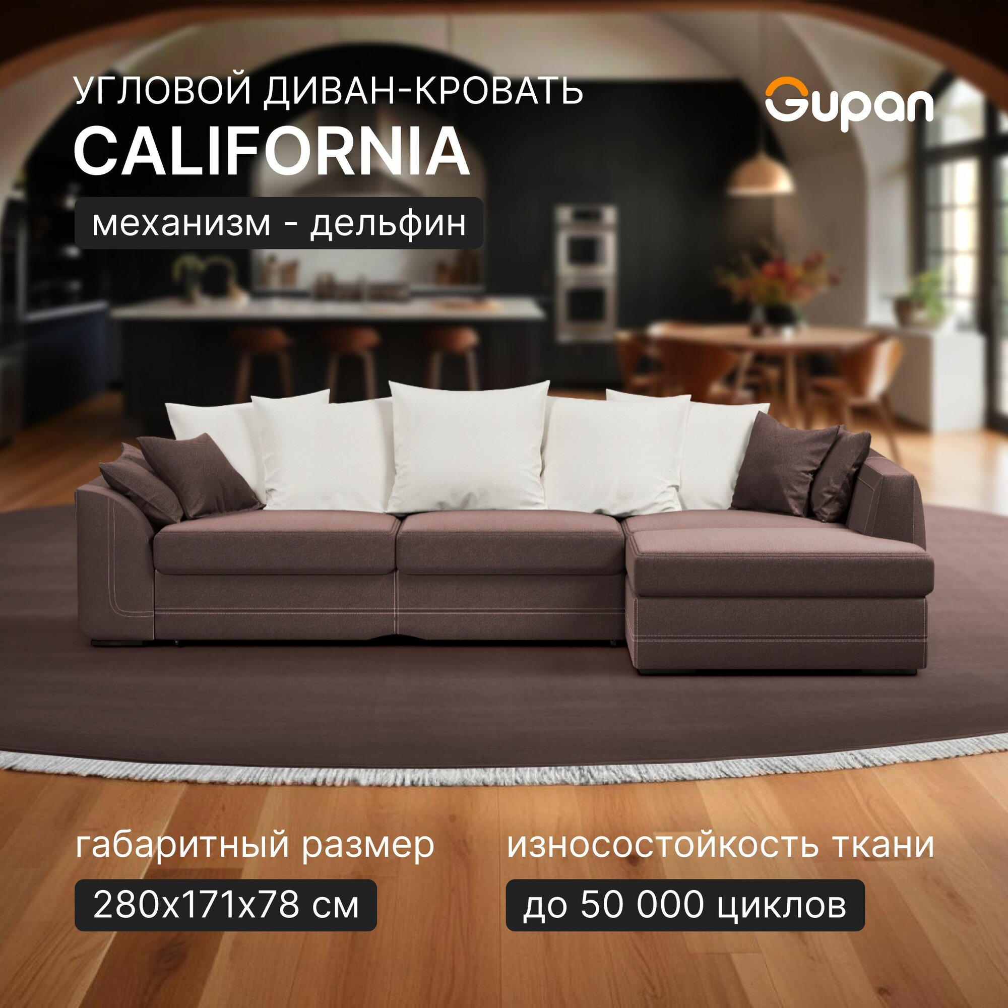 СохранитьДиван угловой Gupan Калифорния Велюр Amigo Chocolate, раскладной, механизм дельфин, беспружинный, с ящиком для белья интересное: