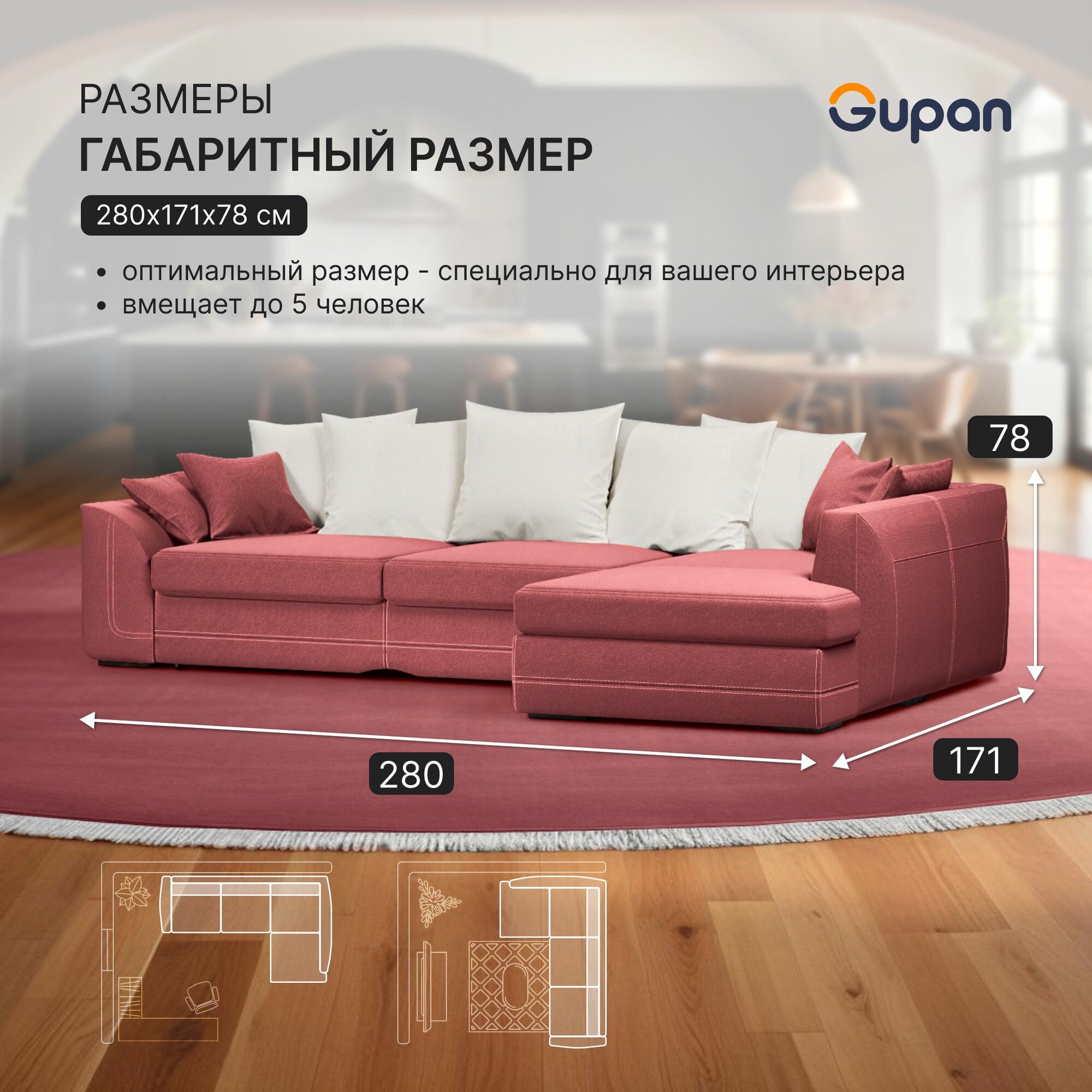 Купить Диван угловой Gupan Калифорния Велюр Amigo Berry, раскладной, механизм дельфин, беспружинный, с ящиком для белья