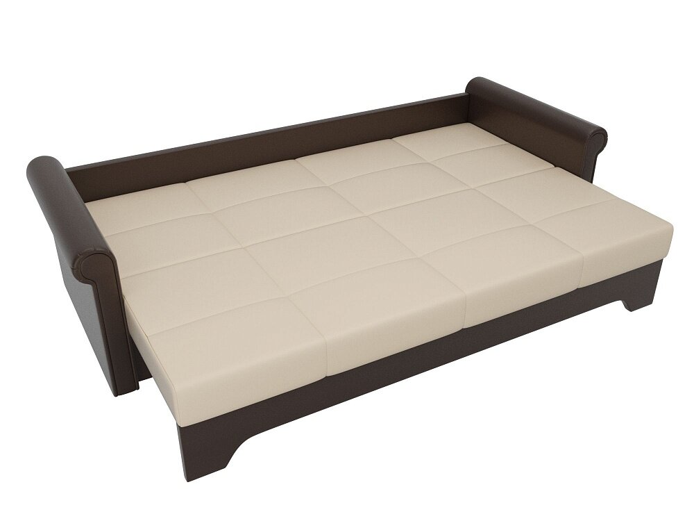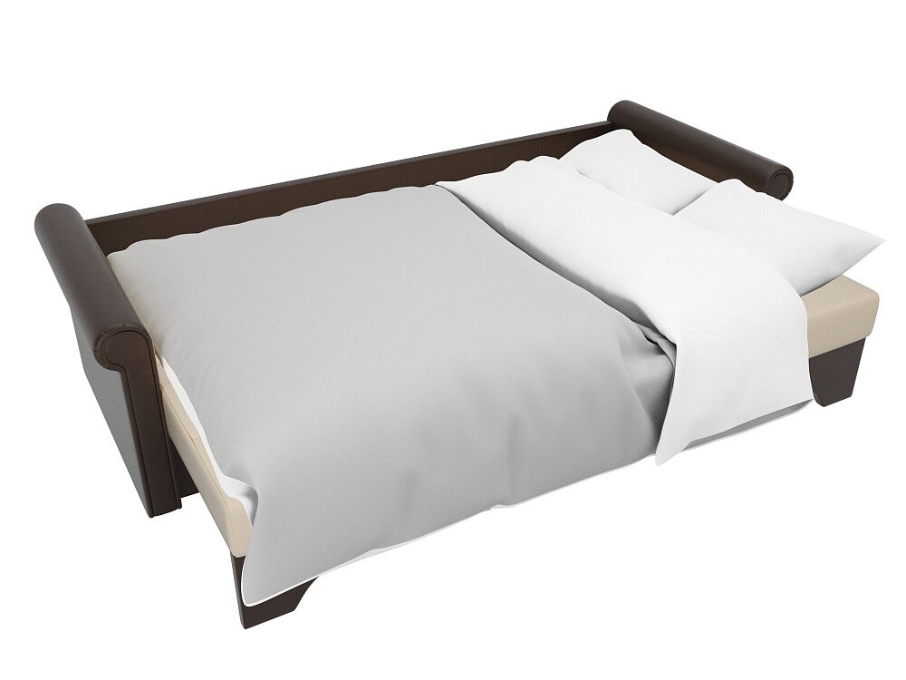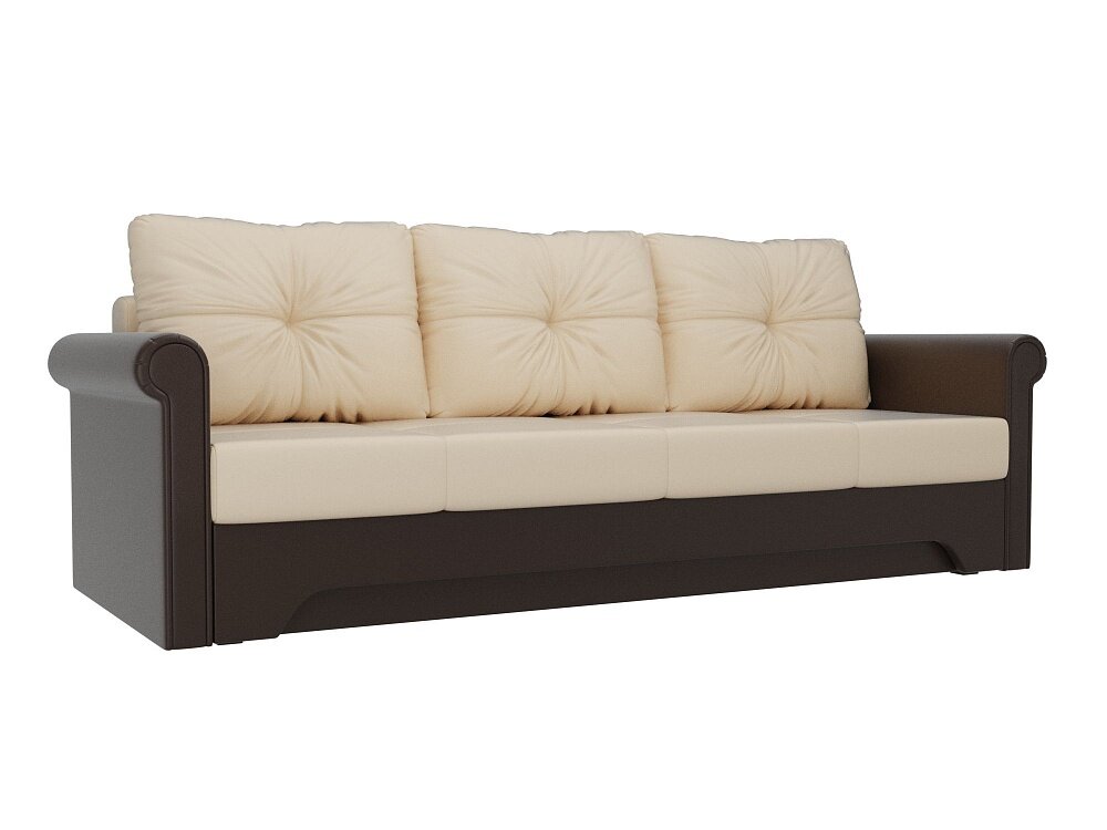 Купить Прямой диван Европа Бежево-Коричневый Экокожа, еврокнижка, 225х101х88 см, с ящиком для белья