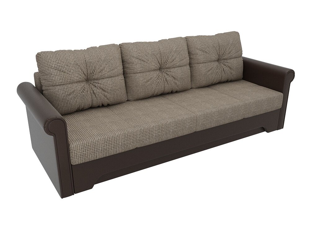Купить Прямой диван Европа Коричневый Рогожка Экокожа, еврокнижка, 225х101х88 см, с ящиком для белья