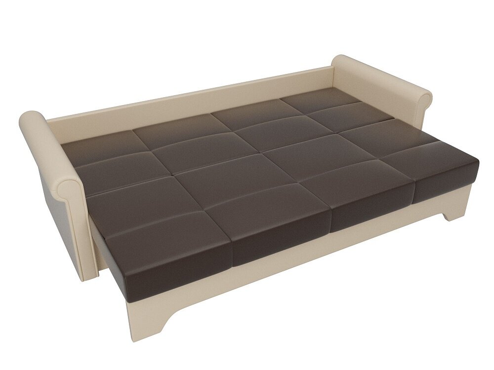 Купить Прямой диван Европа Коричнево-Бежевый Экокожа, еврокнижка, 225х101х88 см, с ящиком для белья