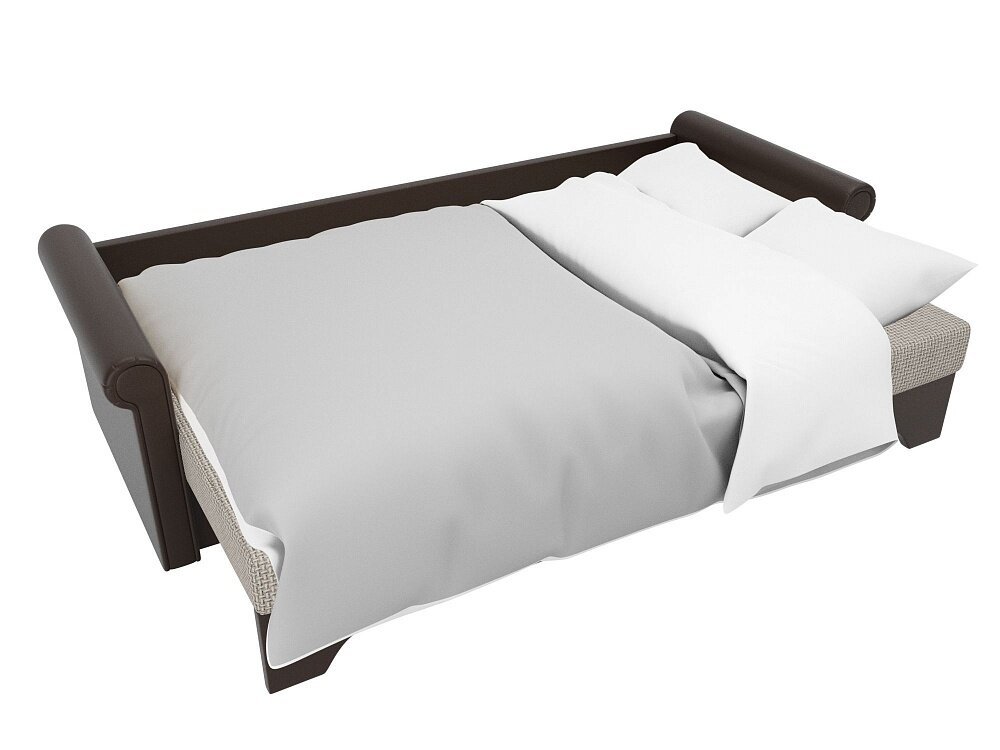 Прямой диван Европа Коричнево-Бежевый Рогожка, еврокнижка, 225х101х88 см, с ящиком для белья
