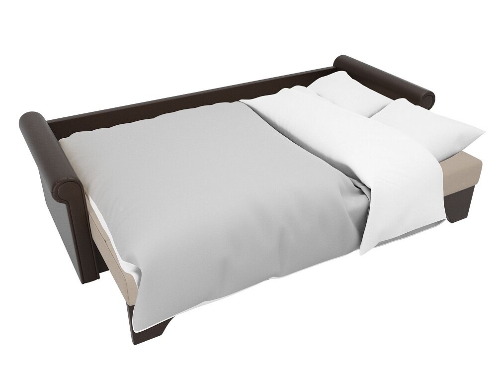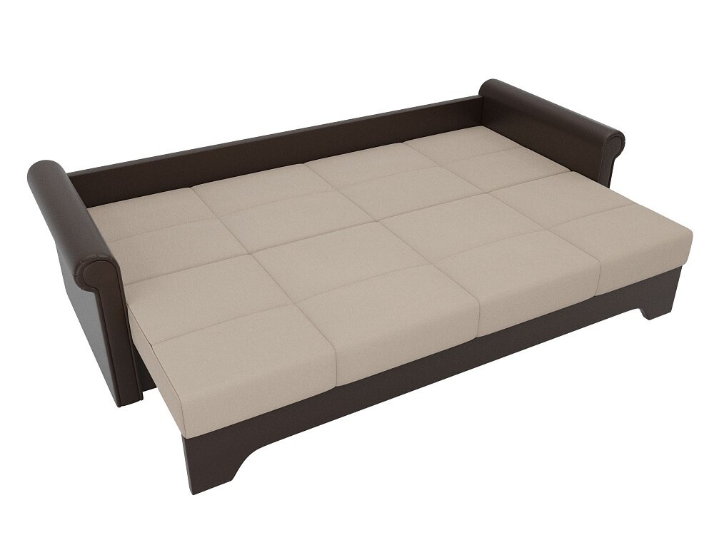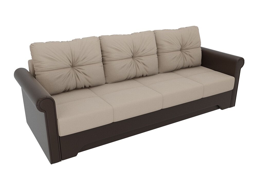 Прямой диван Европа Коричнево-Бежевый Экокожа, еврокнижка, 225х101х88 см, с ящиком для белья