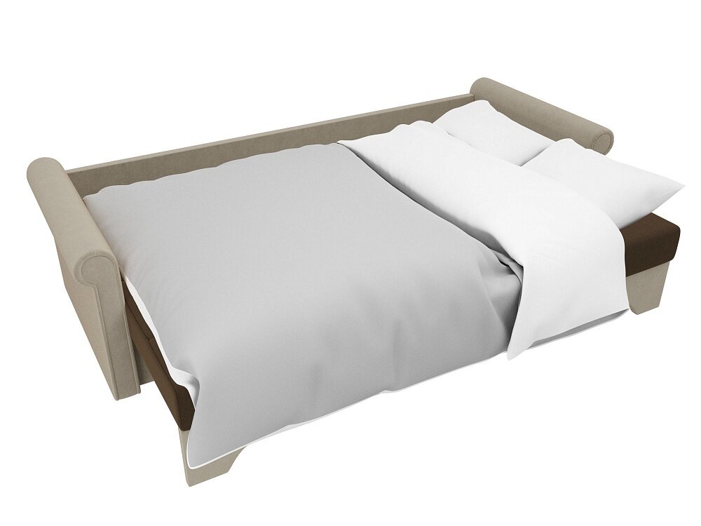 Купить Прямой диван Европа Коричнево-Бежевый Микровельвет, еврокнижка, 225х101х88 см, с ящиком для белья