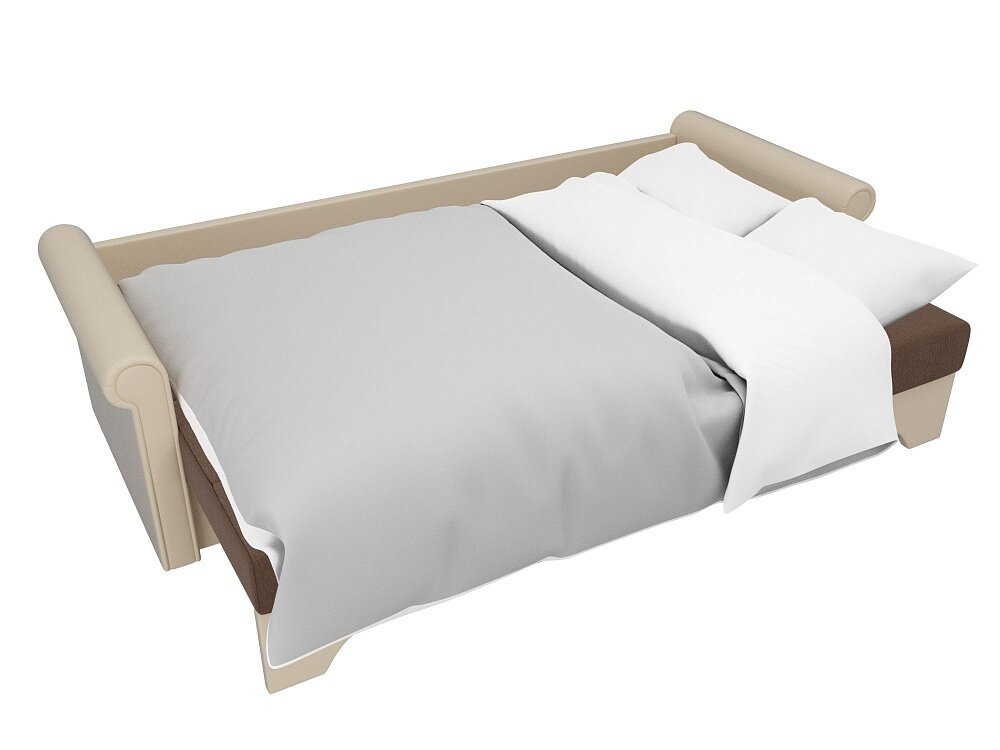 Прямой диван Европа Коричнево-Бежевый Экокожа, еврокнижка, 225х101х88 см, с ящиком для белья