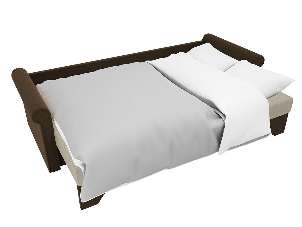 Прямой диван Европа Коричнево-Бежевый Рогожка, еврокнижка, 225х101х88 см, с ящиком для белья