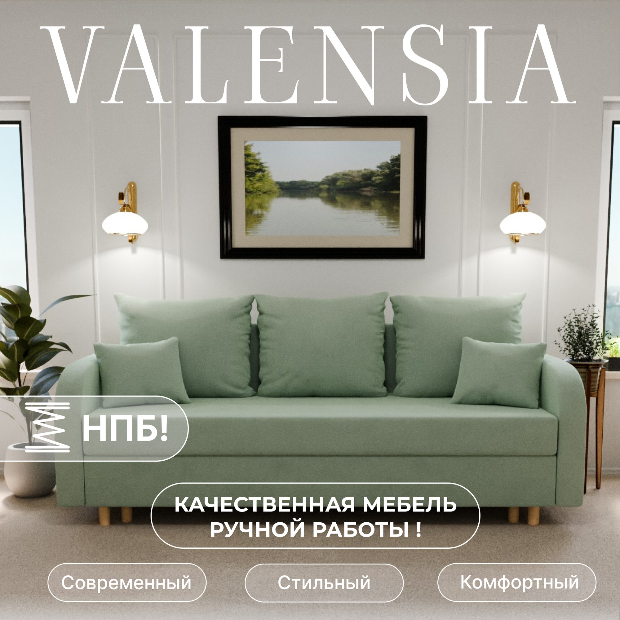 СохранитьДиван раскладной, "Valensia", НПБ, Велютта люкс 14 размеры 220х80х100, фисташковый интересное: