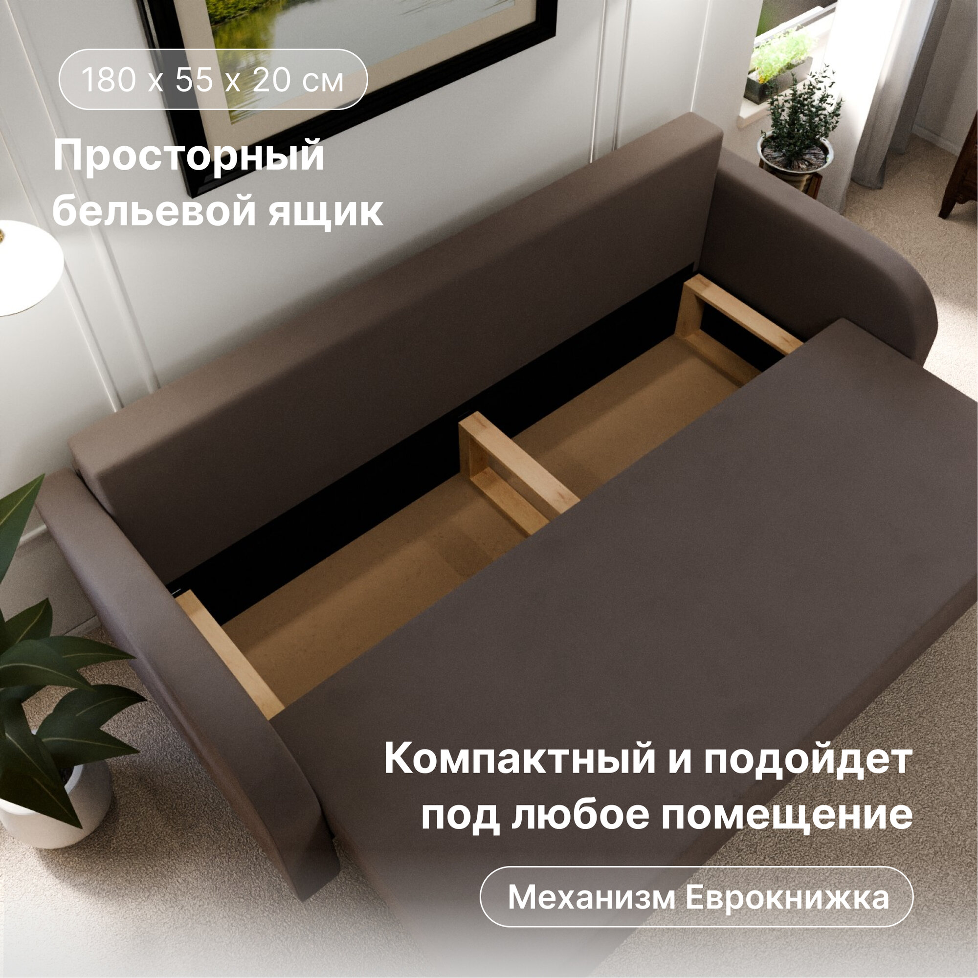 СохранитьДиван раскладной, "Valensia", НПБ, Велютта люкс 23 размеры 220х80х100, коричневый интересное: