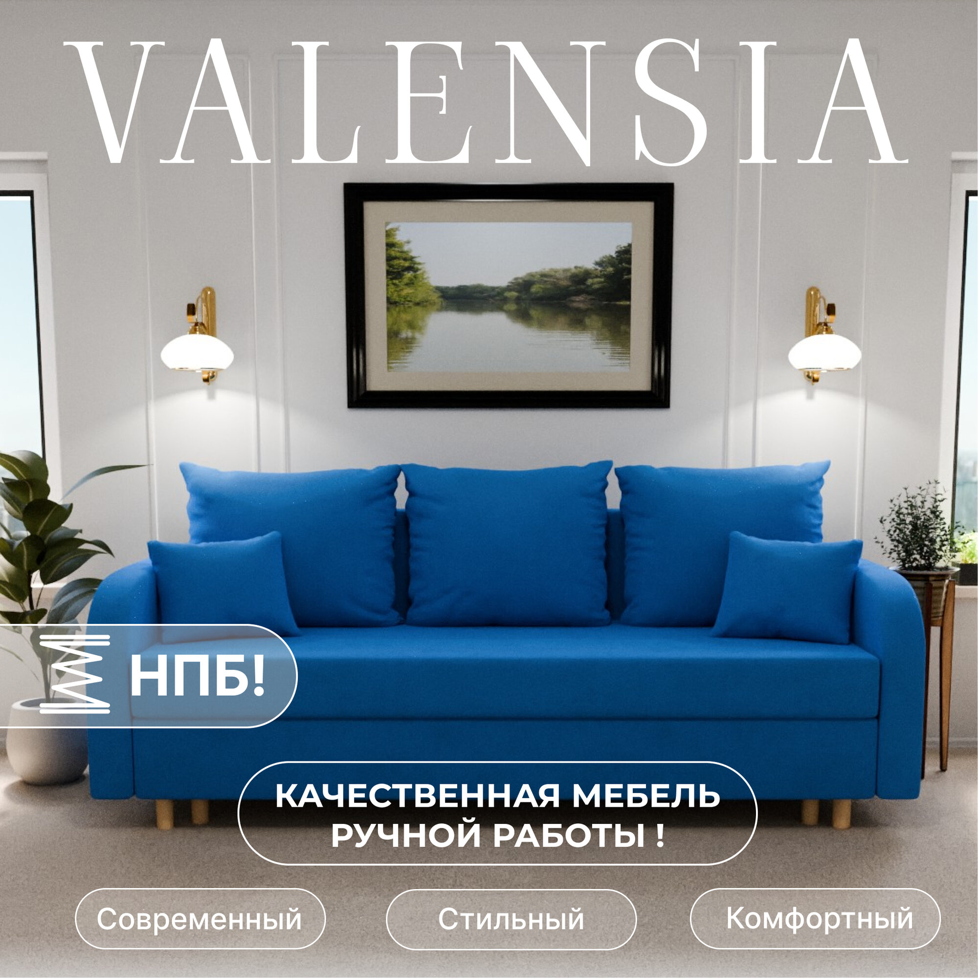 СохранитьДиван раскладной, "Valensia", НПБ, Велютта люкс 45 размеры 220х80х100, голубой интересное: