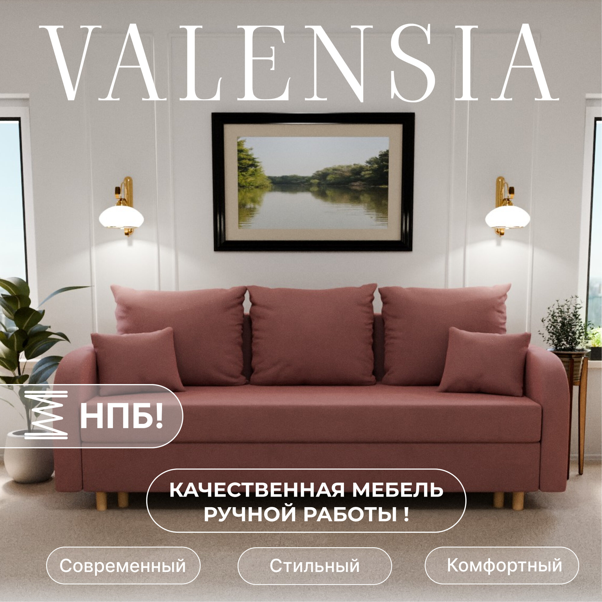 Купить Диван раскладной, "Valensia", НПБ, Велютта люкс 62 размеры 220х80х100, розовый