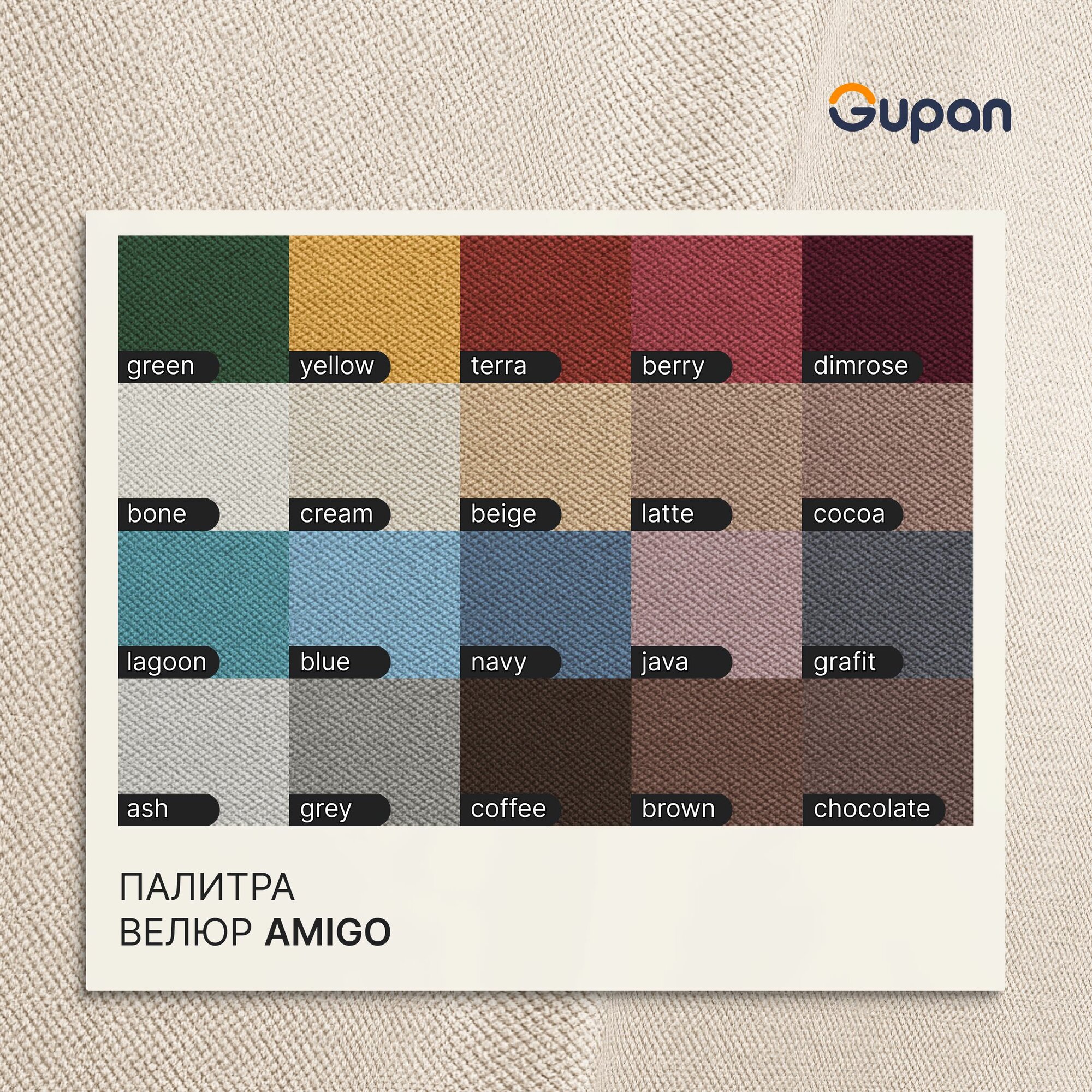 Диван кровать Gupan Кафф 1 / Смайл Велюр Amigo Terra, раскладной, механизм аккордеон, беспружинный, с ящиком для белья