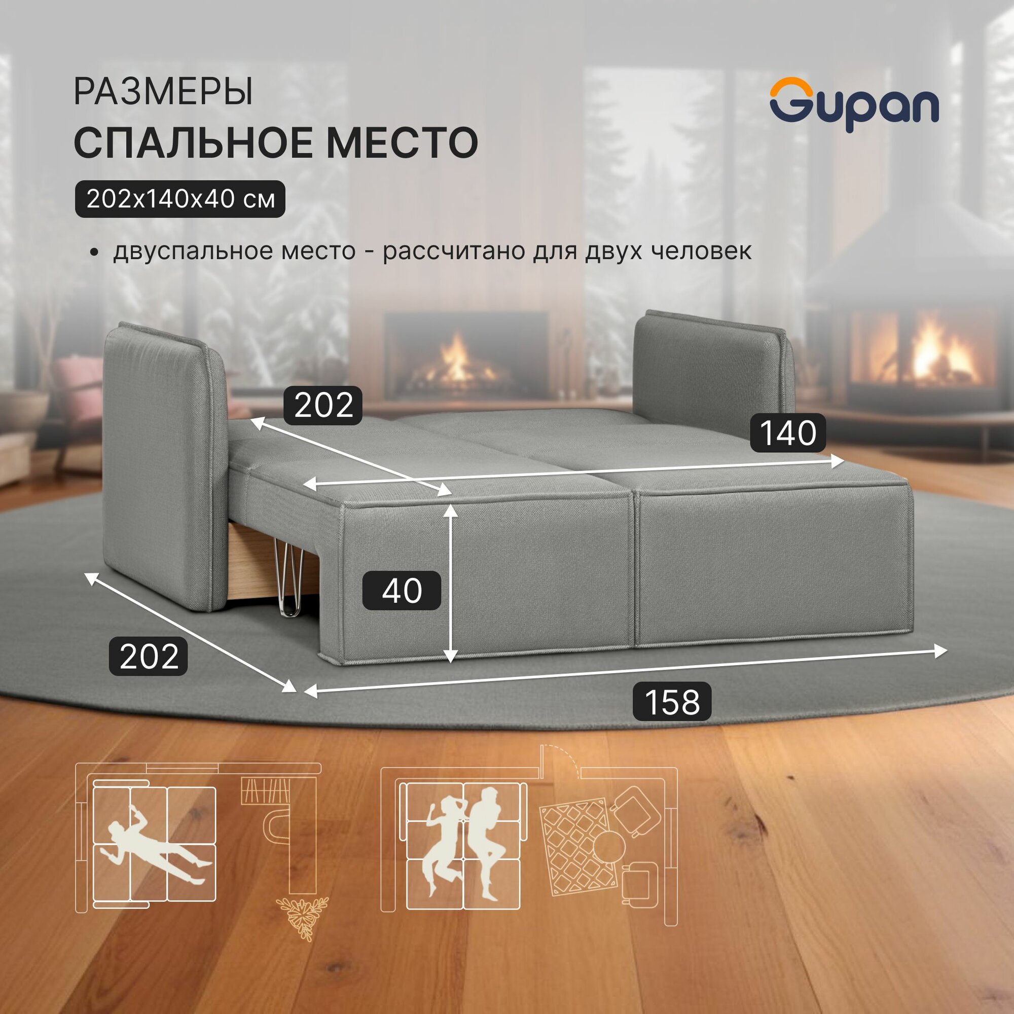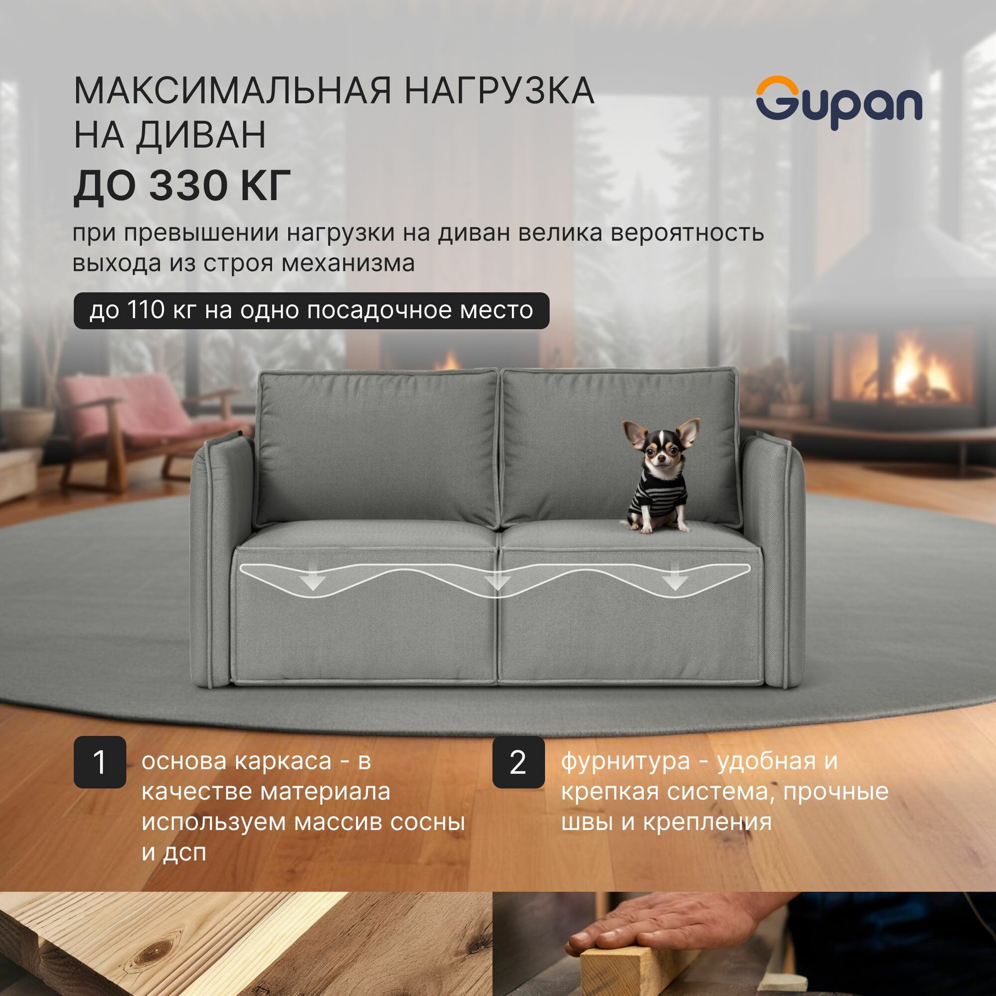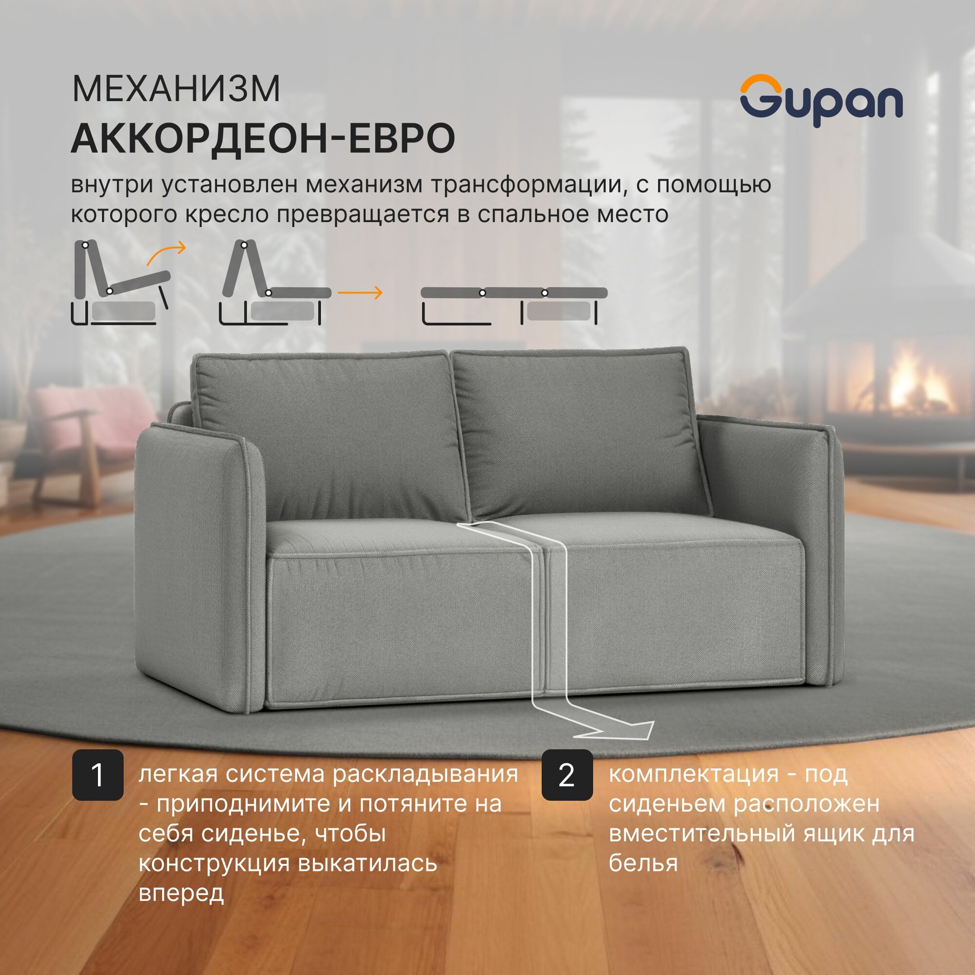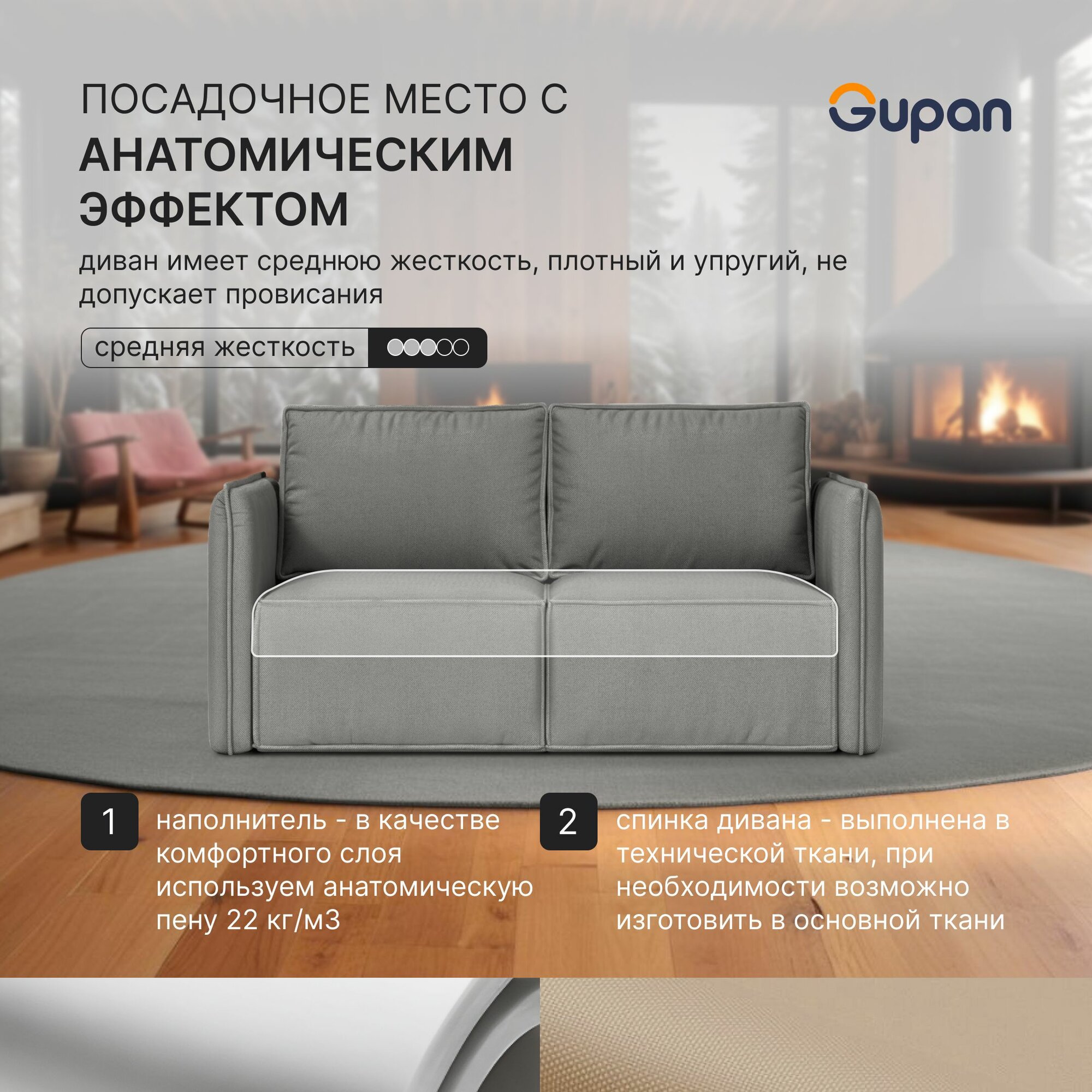 Диван кровать Gupan Кафф 1 / Смайл Рогожка Savana Mouse, раскладной, механизм аккордеон, беспружинный, с ящиком для белья